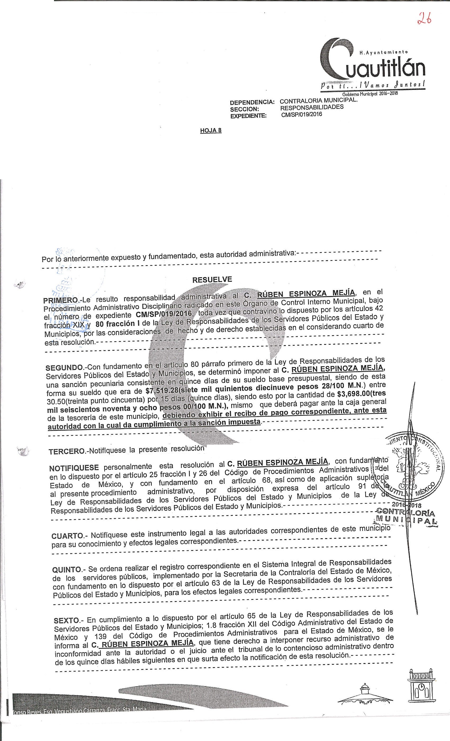 Archivo a la resolución donde se observe la aprobación de la sanción: MX-M264N_20171025_150454_001.jpg