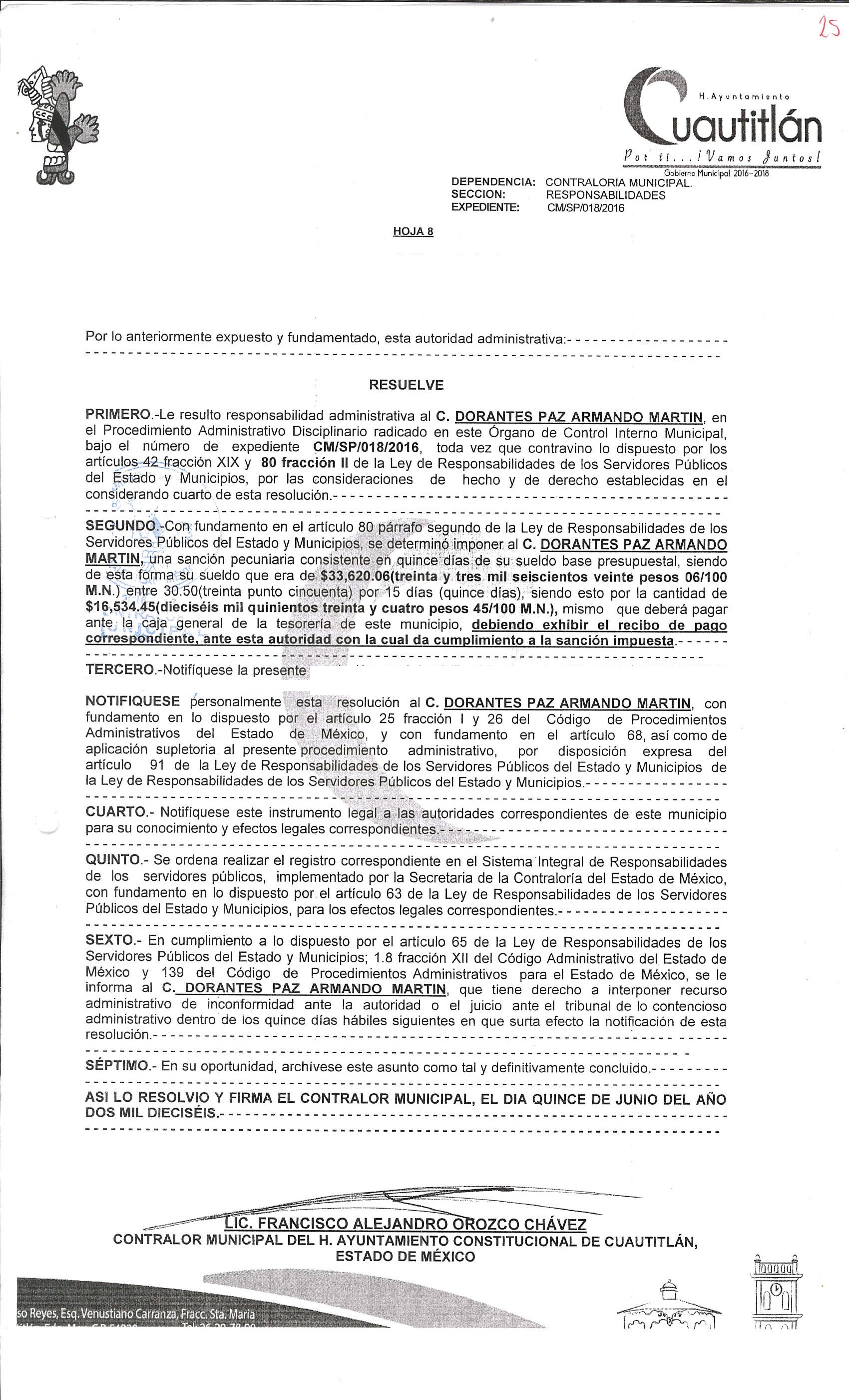 Archivo a la resolución donde se observe la aprobación de la sanción: DORANTES PAZ.jpg