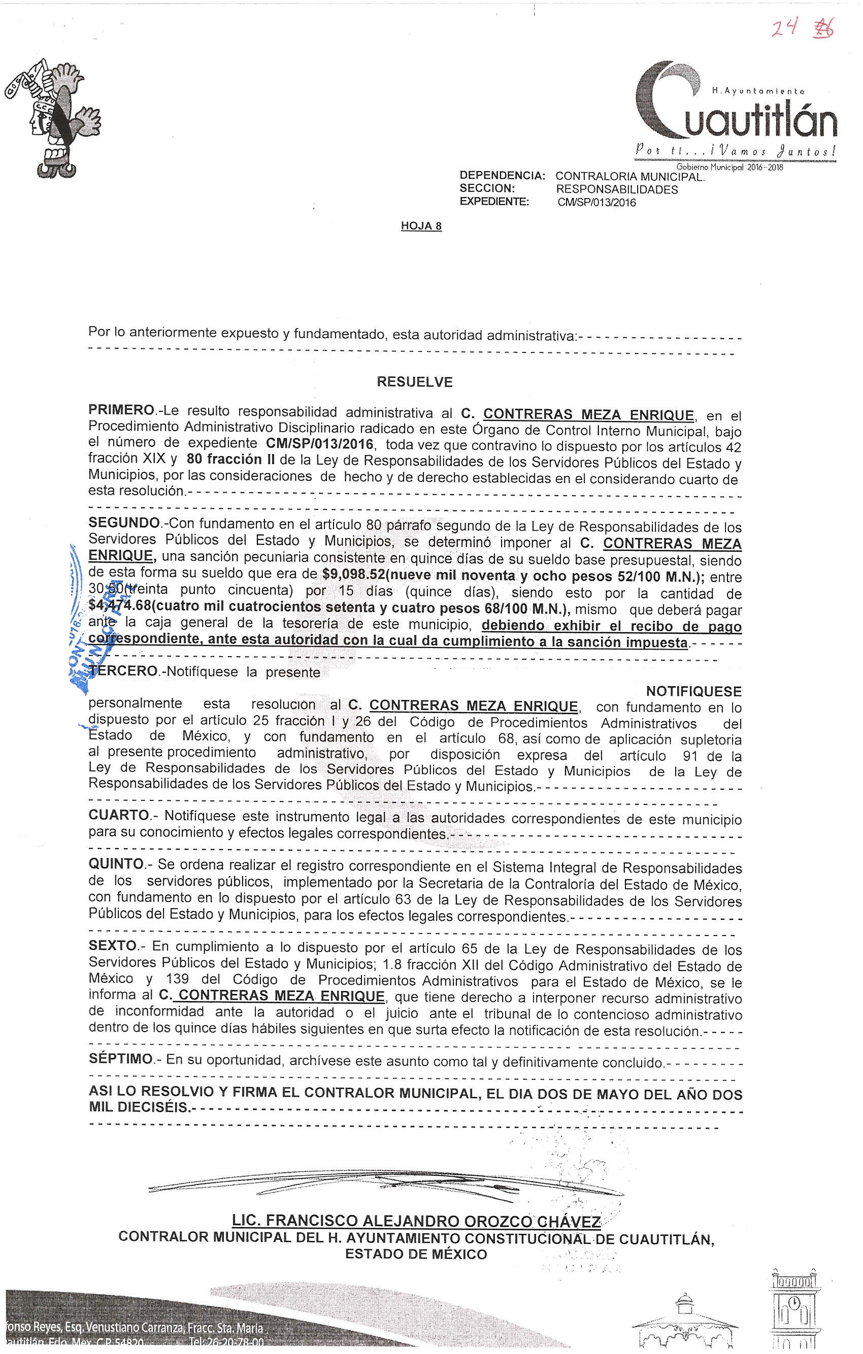 Archivo a la resolución donde se observe la aprobación de la sanción: MX-M264N_20171025_151448_001.jpg