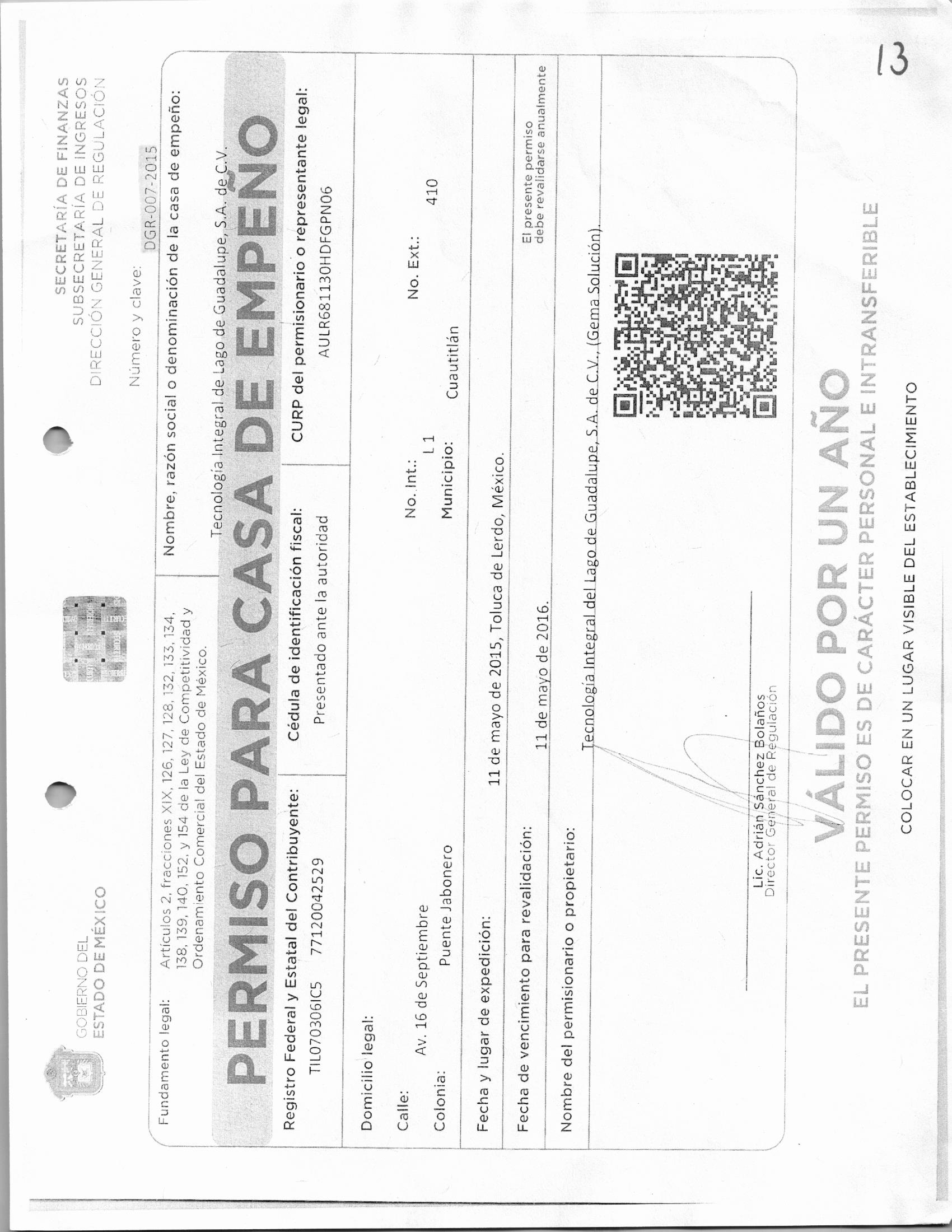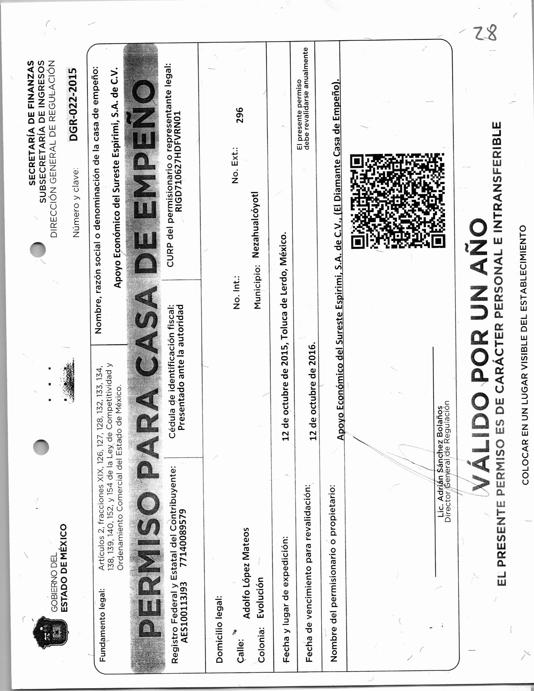 Otorgar permiso para Casa de Empeño