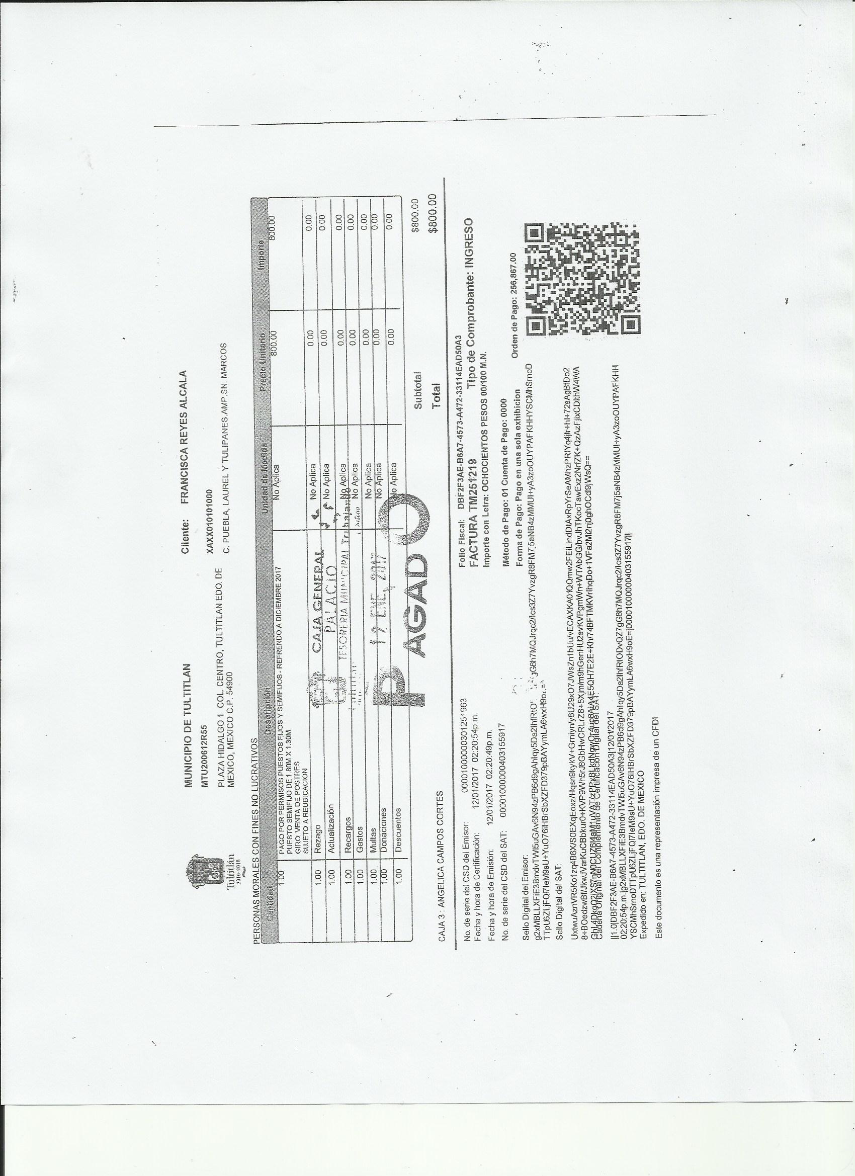 Archivo del documento: FRANCISCA REYES ALCALA 001.jpg Monto total, bien, servicio y/o recurso aprovechado :