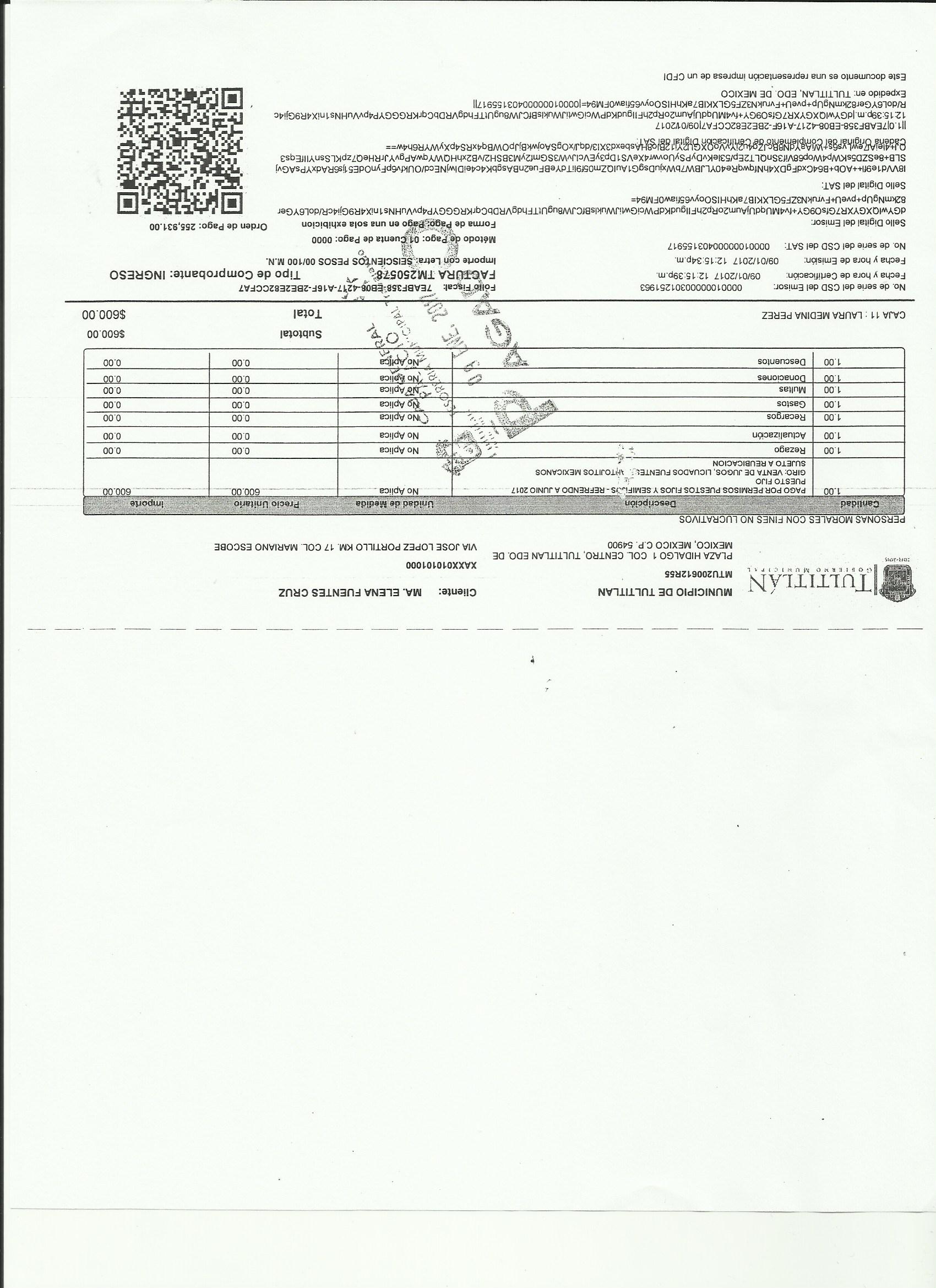 Archivo del documento: ma. elena fuentes cruz 001.jpg Monto total, bien, servicio y/o recurso aprovechado :