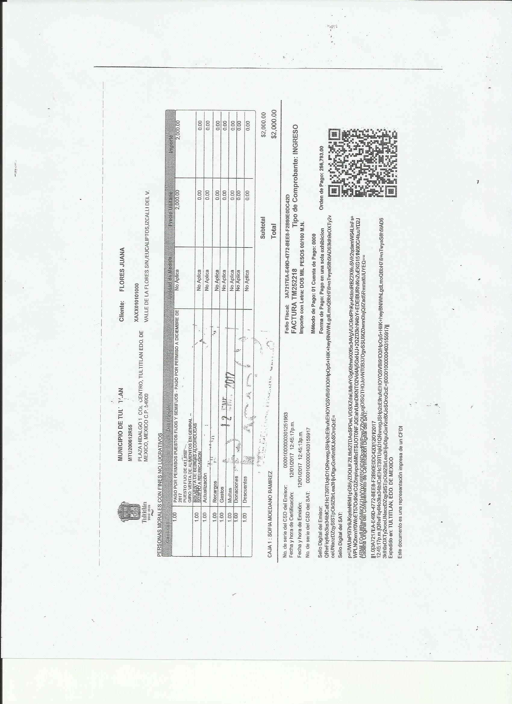 Archivo del documento: FLORES JUANA 001.jpg Monto total, bien, servicio y/o recurso aprovechado :