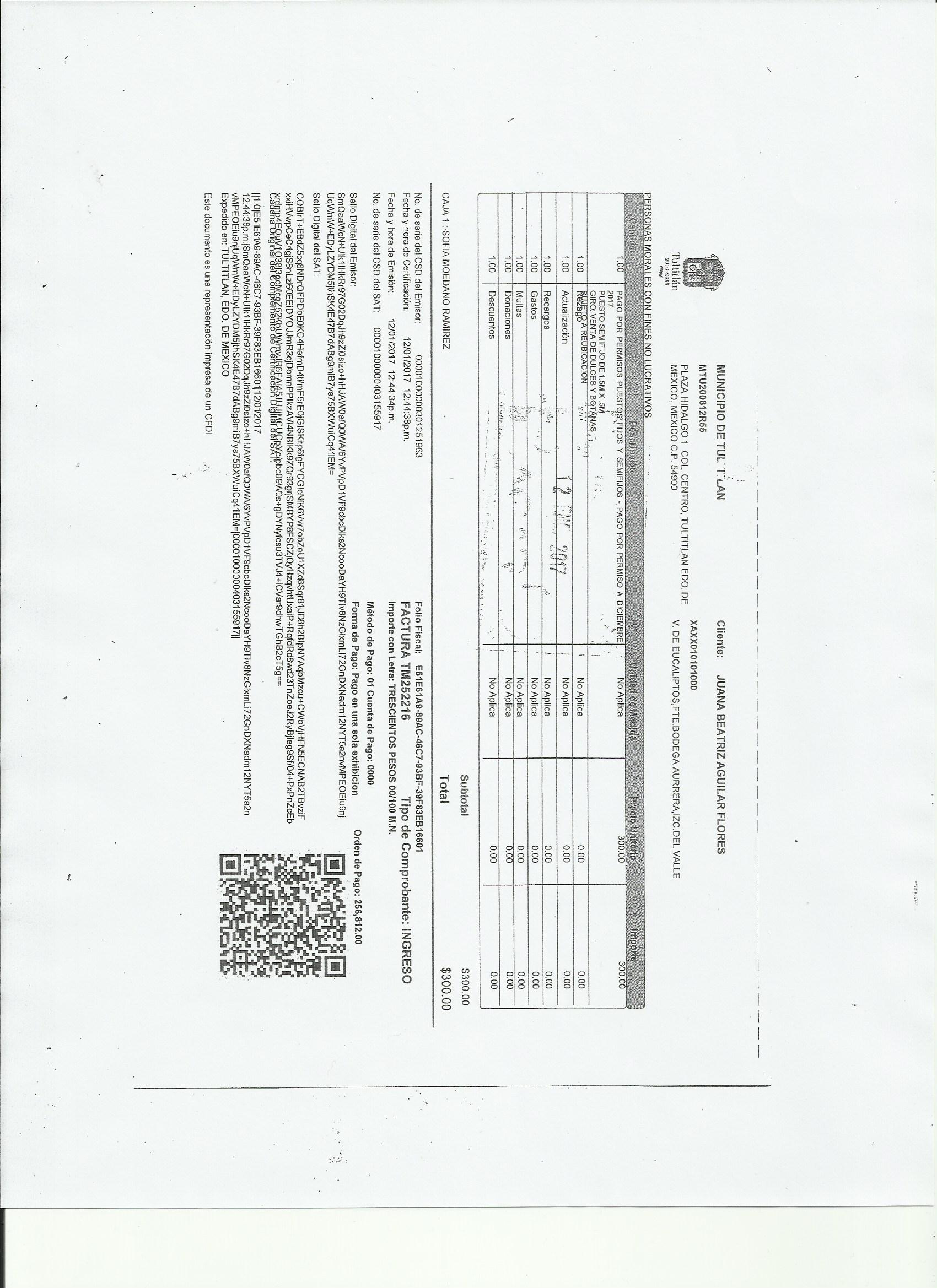 Archivo del documento: JUANA BEATRIZ AGUILAR FLORES 001.jpg Monto total, bien, servicio y/o recurso aprovechado :