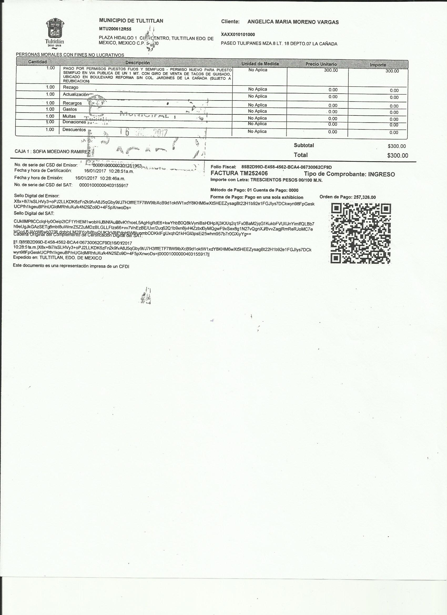 Archivo del documento: MORALES RODRÍGUEZ SERAFIN 001.jpg Monto total, bien, servicio y/o recurso aprovechado :