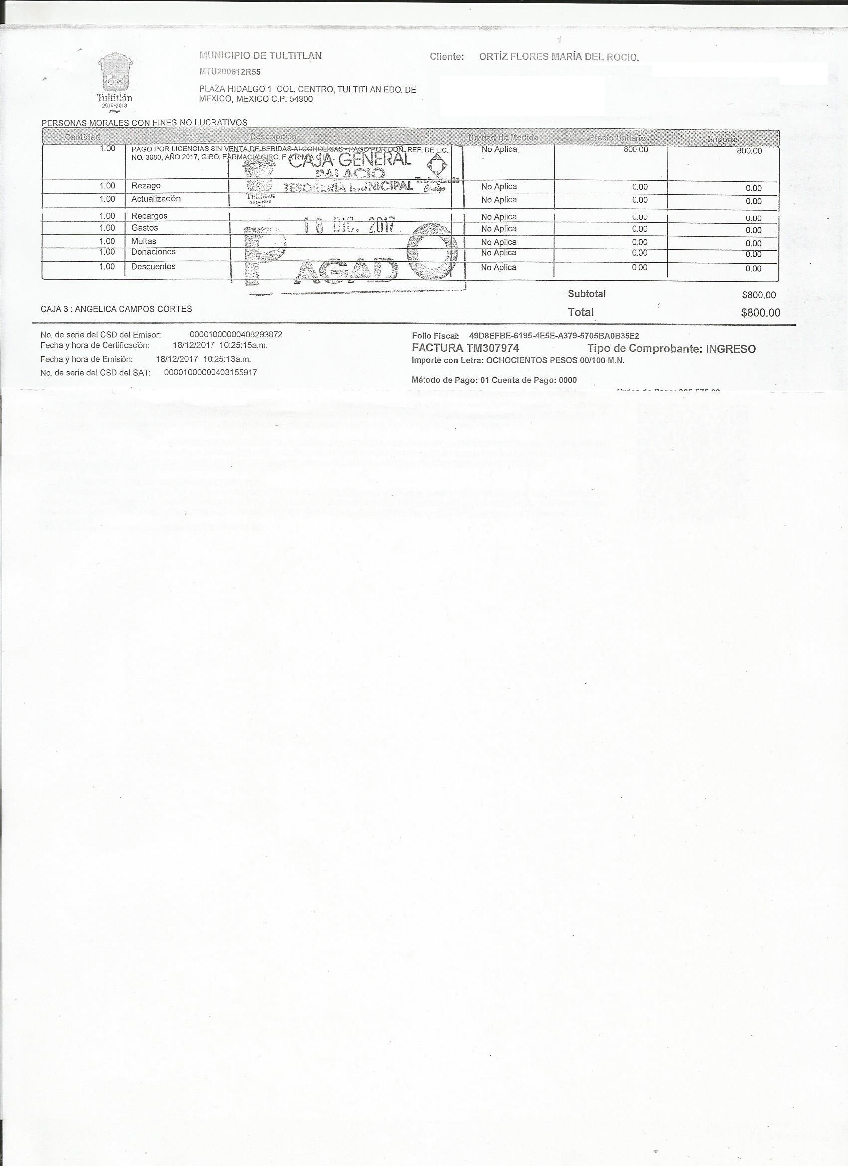 Archivo del documento: Scan6335 ORTIZ FLORES MARIA DEL ROCIO.jpg Archivo del documento (Enlace externo): TM307974 Monto total, bien, servicio y/o recurso aprovechado :