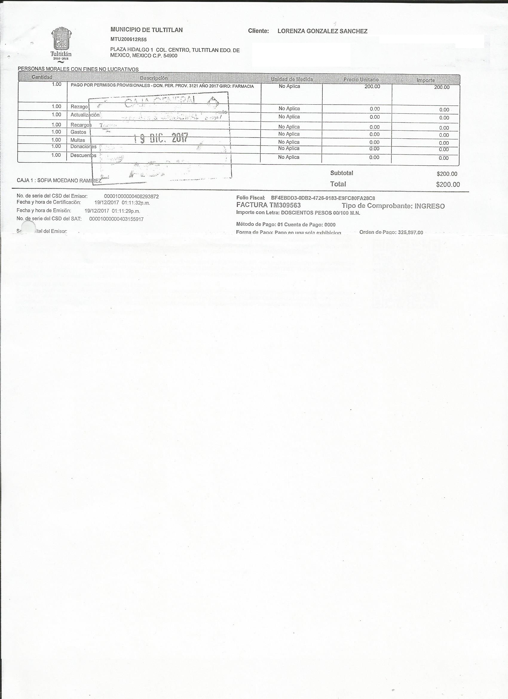 Archivo del documento: Scan6340 LORENZA GONZALEZ SANCHEZ.jpg Archivo del documento (Enlace externo): TM309563 Monto total, bien, servicio y/o recurso aprovechado :