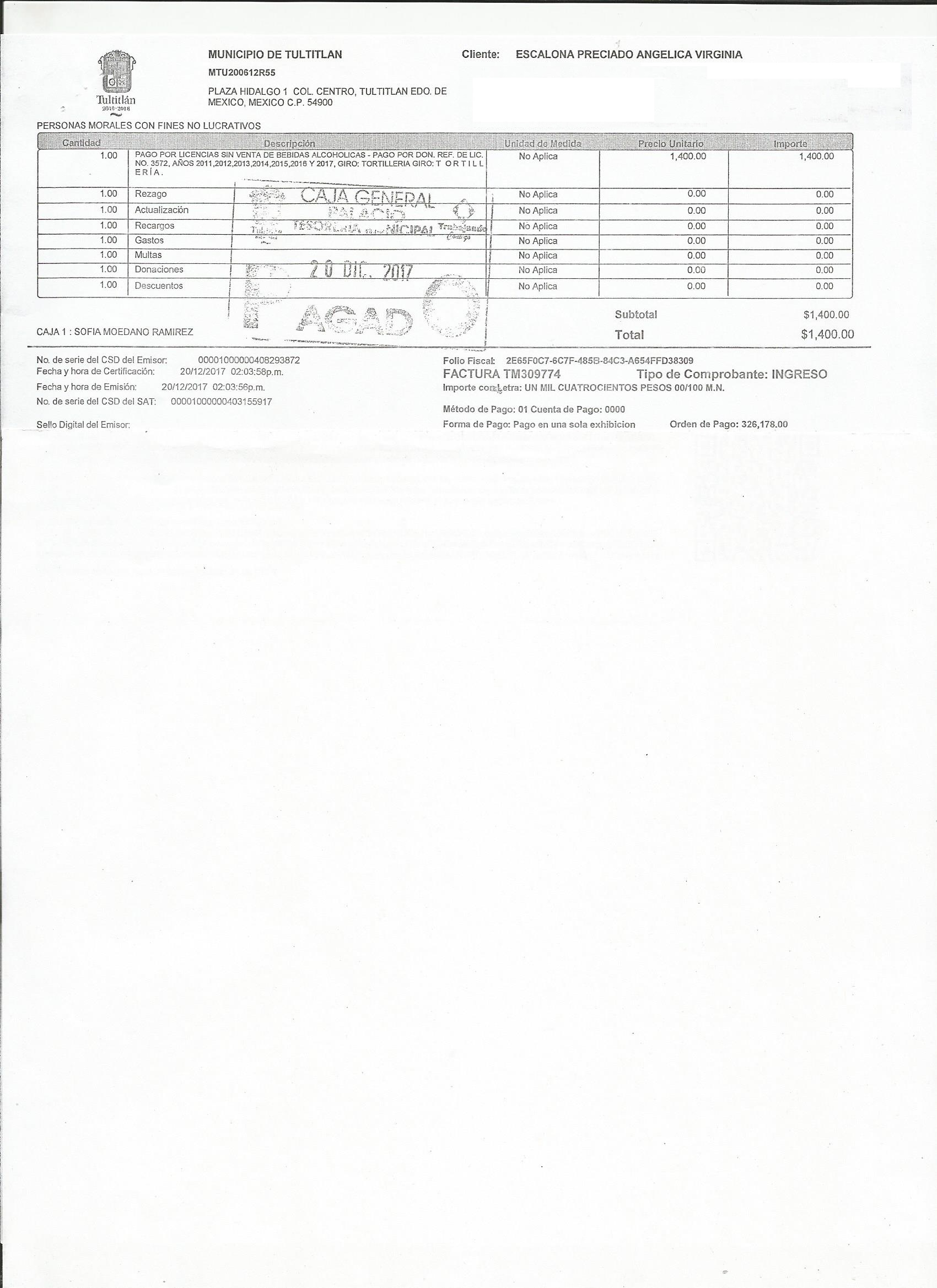 Archivo del documento: Scan6337 SANTIAGO LOPEZ DULCE SELENE.jpg Archivo del documento (Enlace externo): TM310077 Monto total, bien, servicio y/o recurso aprovechado :