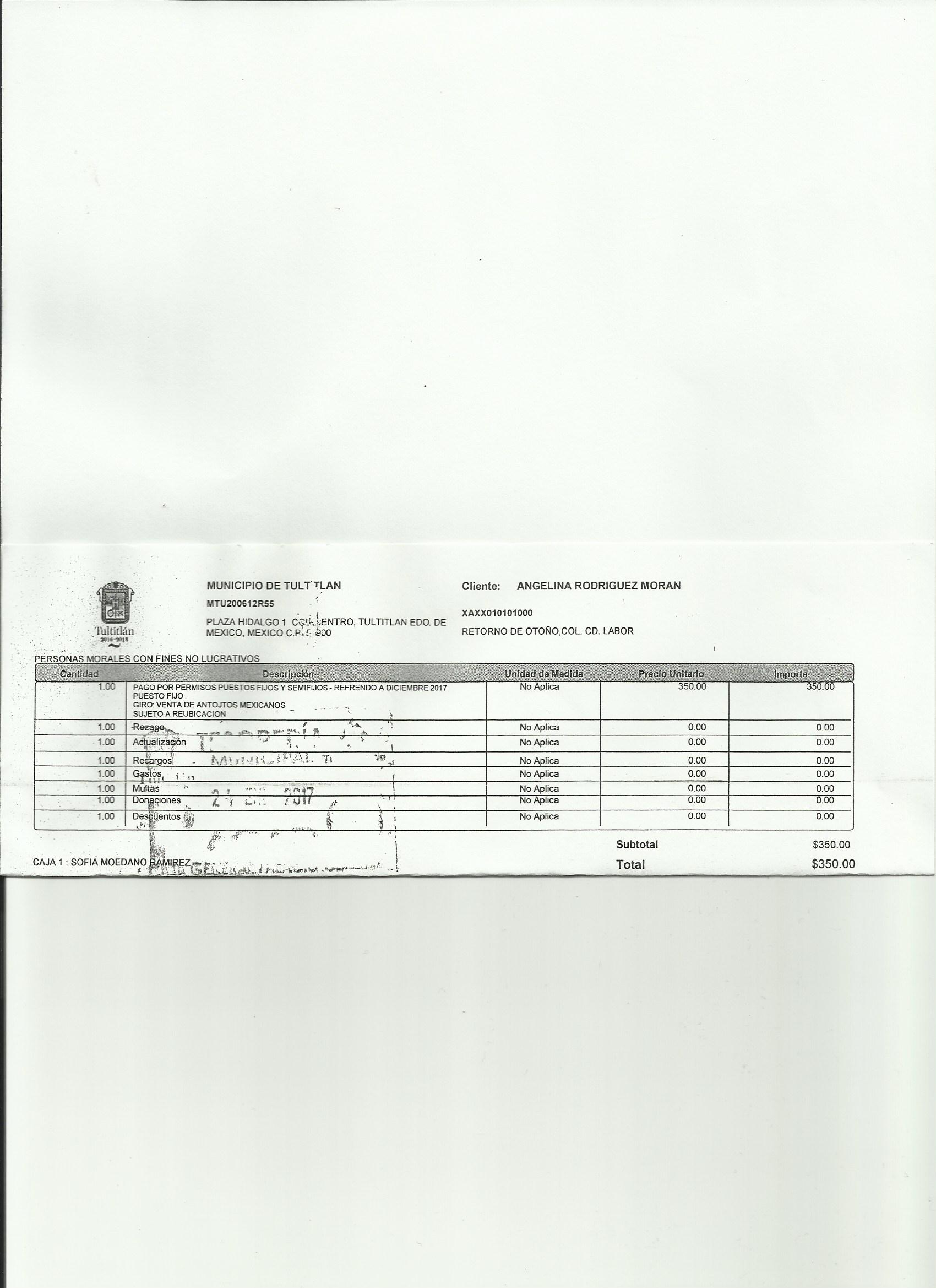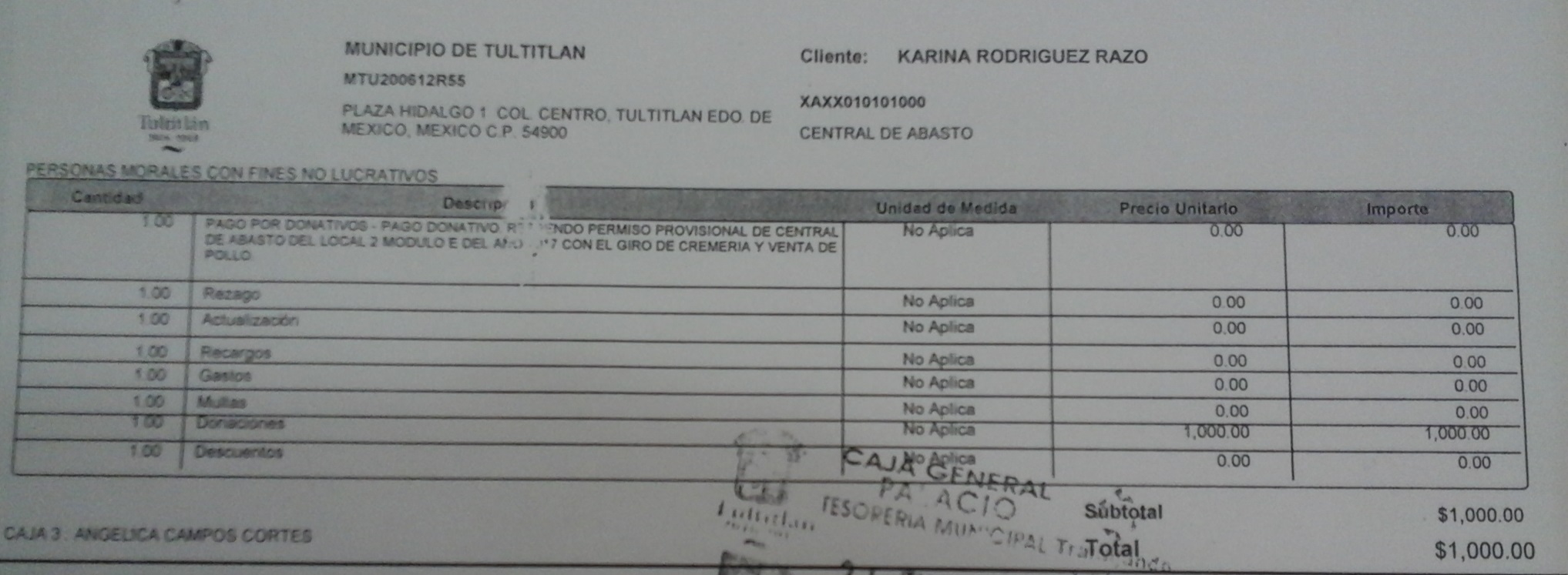 Archivo del documento: KARINA RODRIGUEZ RAZO (CENTRAL DE ABASTO).jpg Monto total, bien, servicio y/o recurso aprovechado :