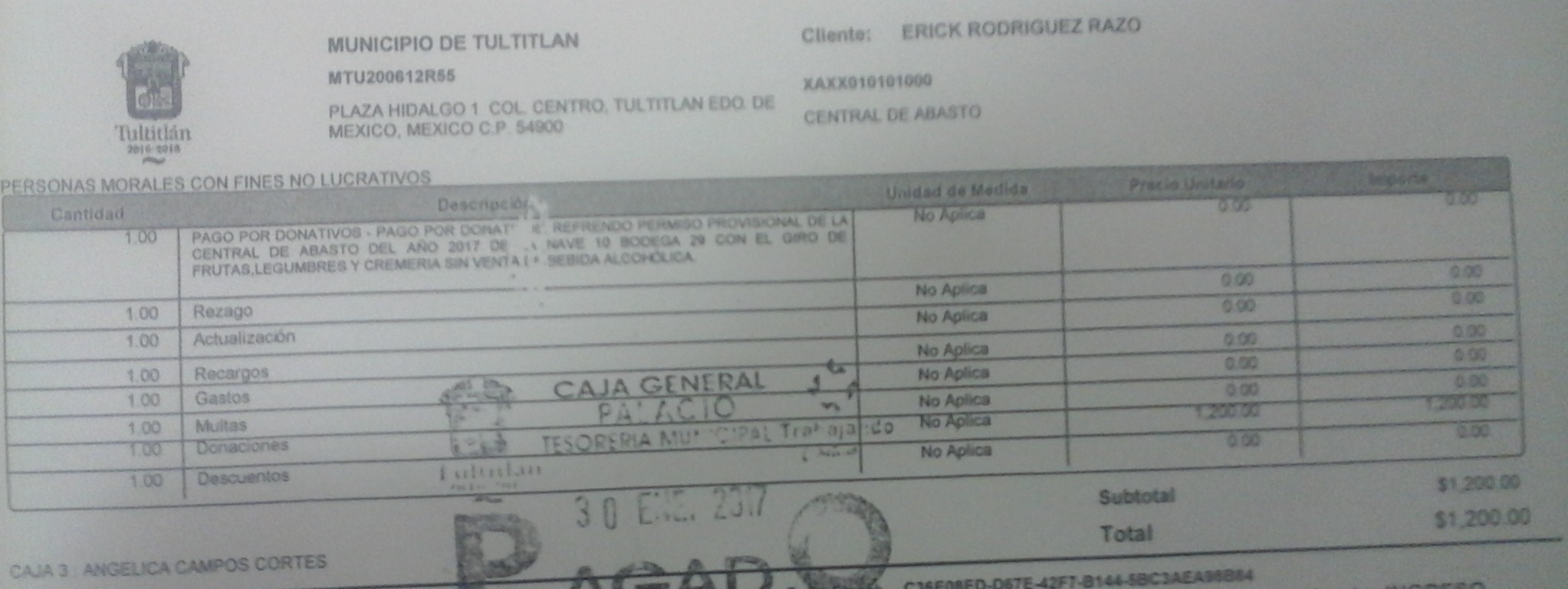 Archivo del documento: ERICK RODRIGUEZ RAZO (CENTRAL DE ABASTO).jpg Monto total, bien, servicio y/o recurso aprovechado :