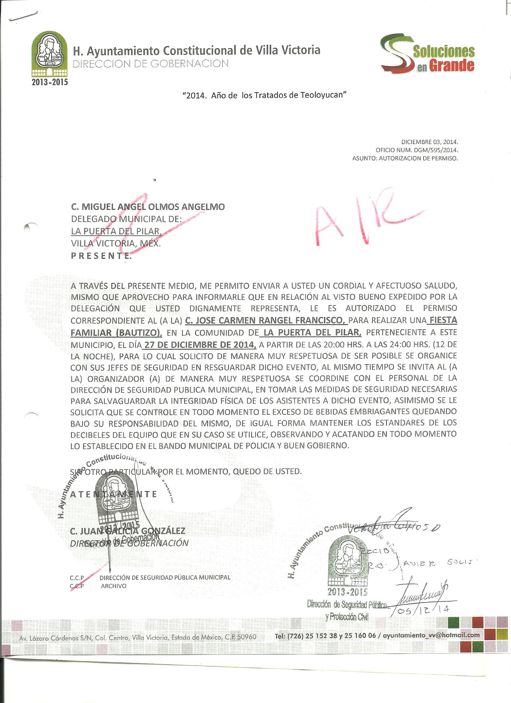 EXPEDICION DE PERMISOS PARA LA REALIZACION DE FIESTAS PARTICULARES Y EVENTOS RELIGIOSOS
