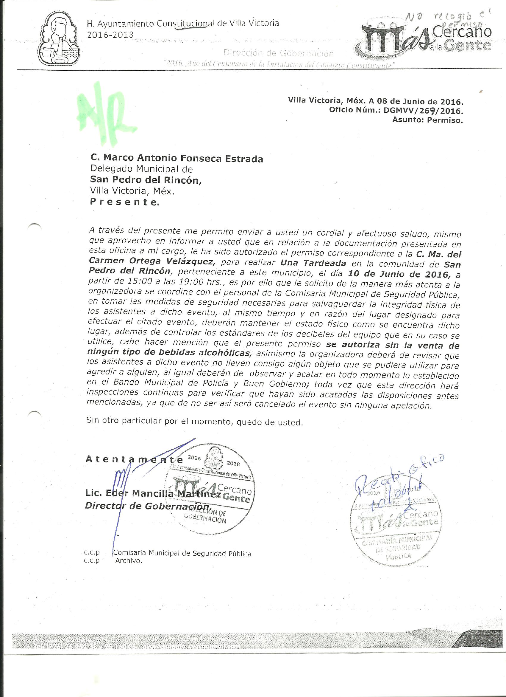 Archivo del documento: PERMISO 269.jpg Archivo del documento (Enlace externo): 0 Monto total, bien, servicio y/o recurso aprovechado :
