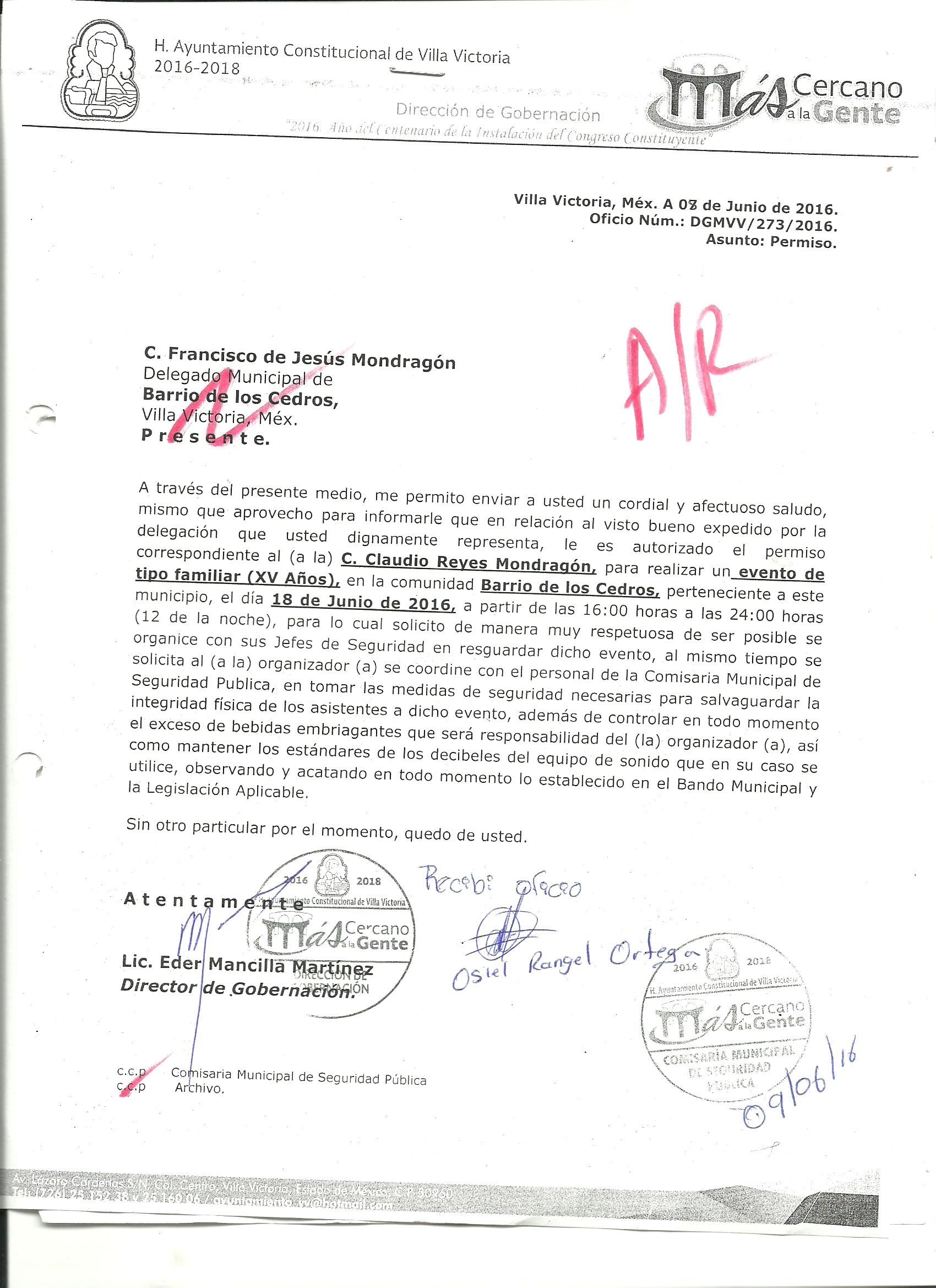 Archivo del documento: PERMISO 273.jpg Archivo del documento (Enlace externo): 0 Monto total, bien, servicio y/o recurso aprovechado :