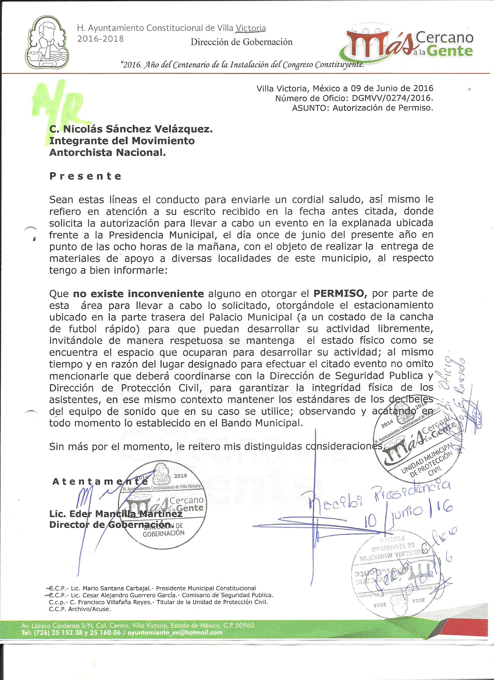 Archivo del documento: PERMISO 274.jpg Archivo del documento (Enlace externo): 0 Monto total, bien, servicio y/o recurso aprovechado :