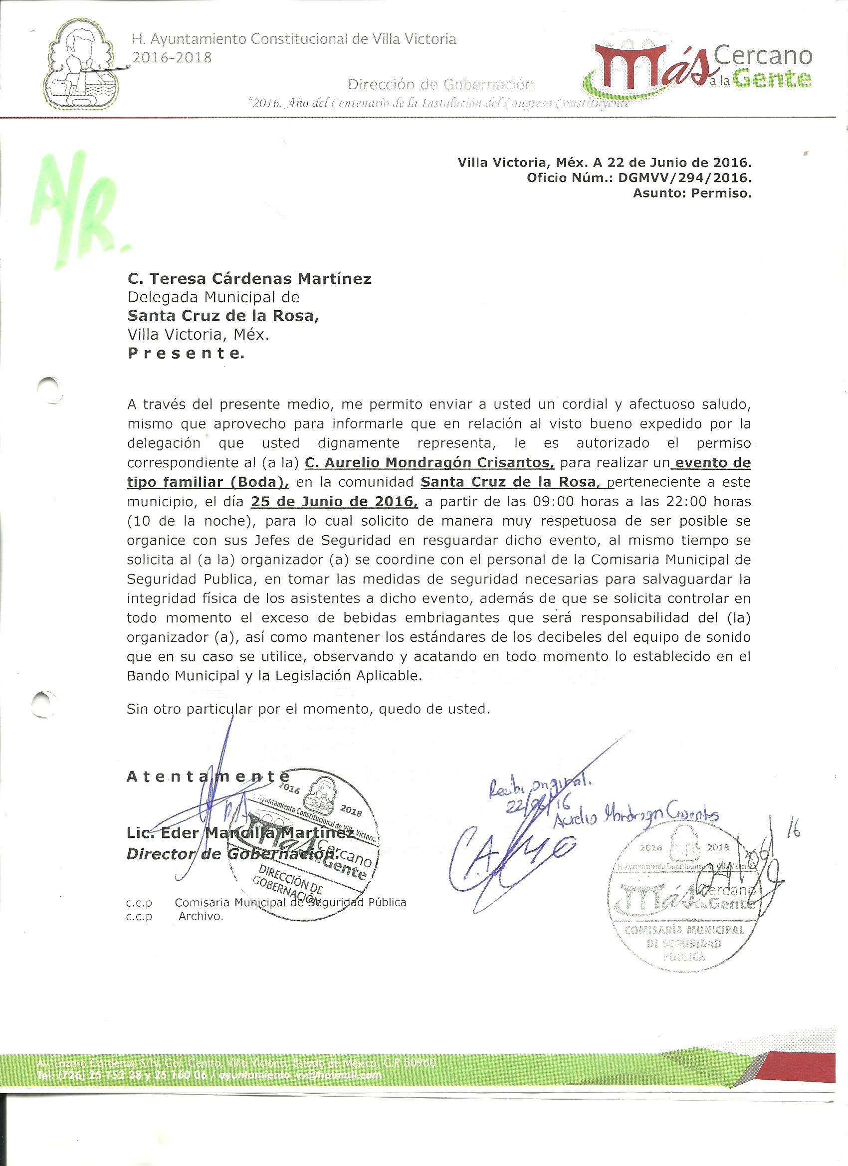 Archivo del documento: PERMISO 294.jpg Archivo del documento (Enlace externo): 0 Monto total, bien, servicio y/o recurso aprovechado :