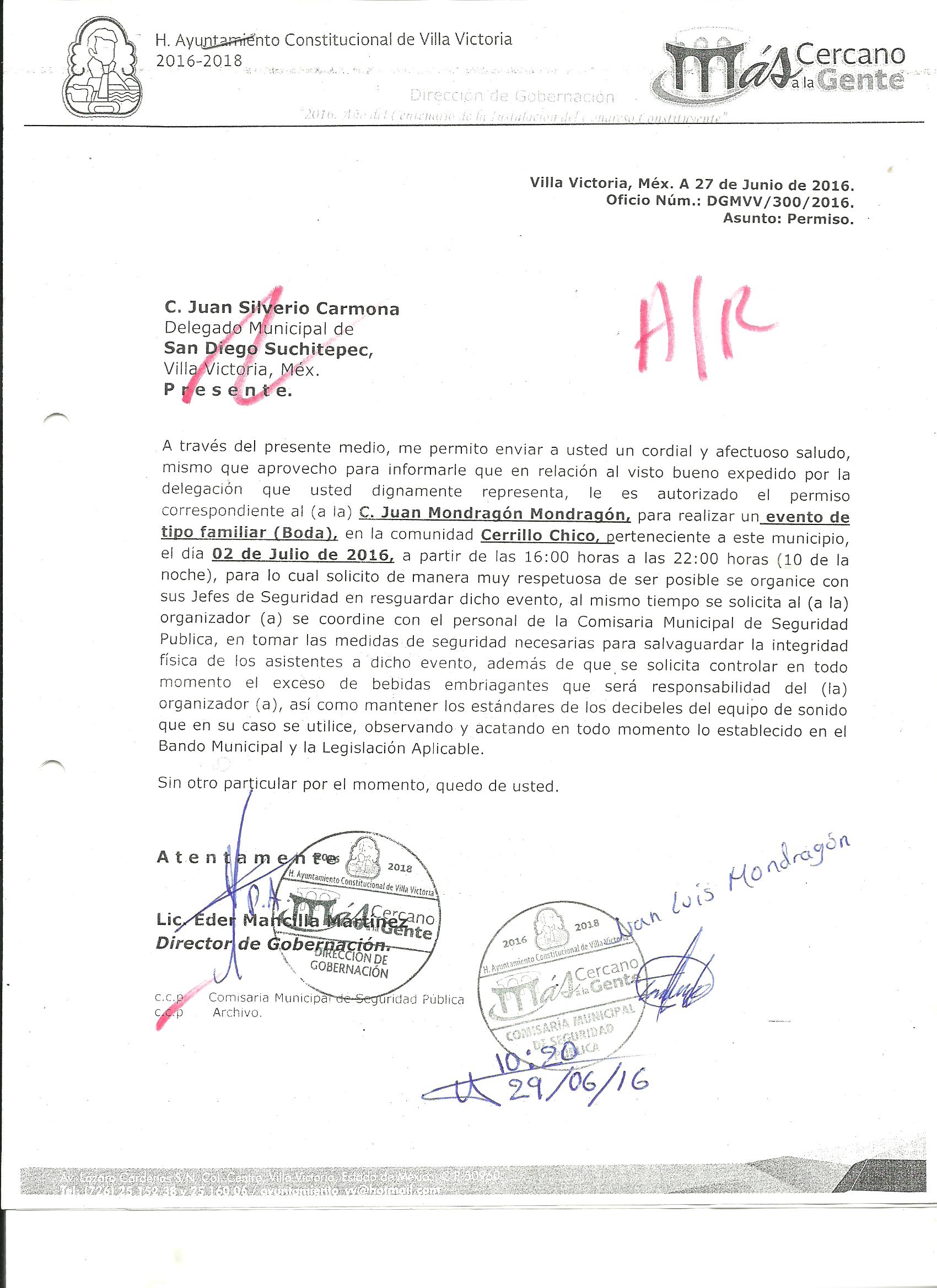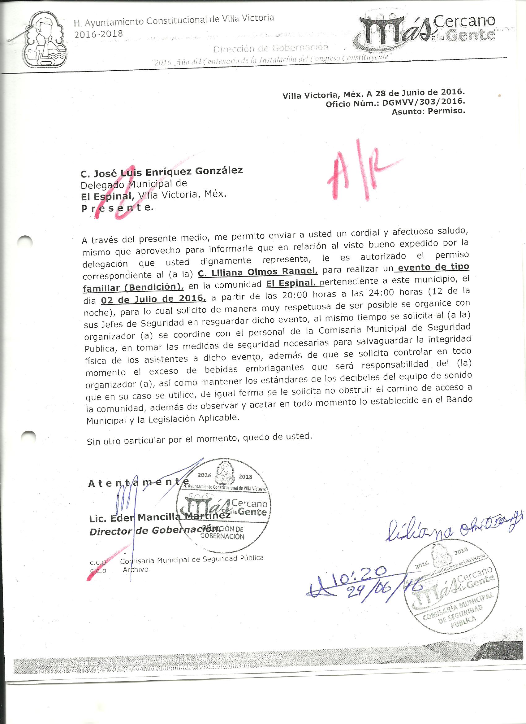 Archivo del documento: PERMISO 303.jpg Archivo del documento (Enlace externo): 0 Monto total, bien, servicio y/o recurso aprovechado :
