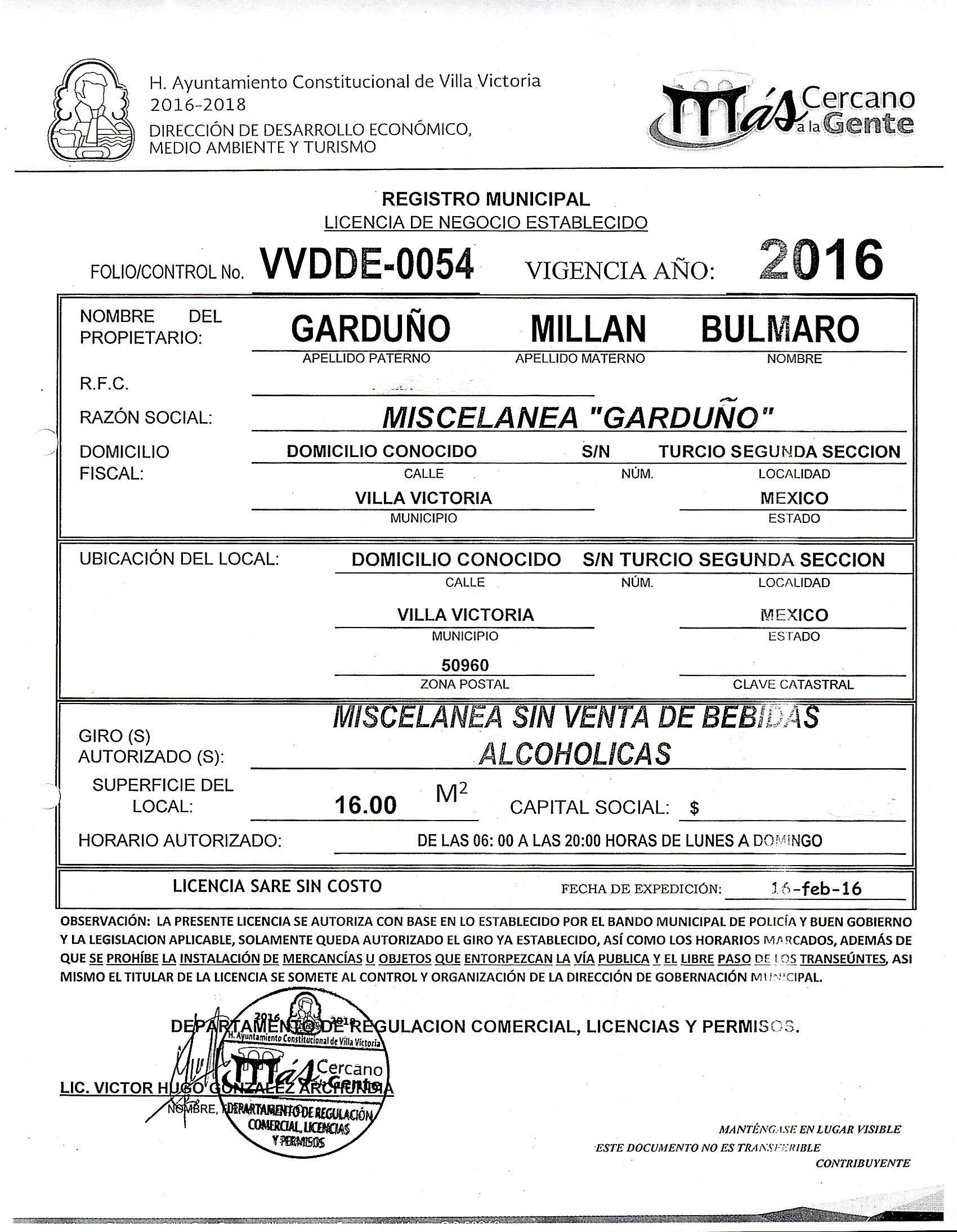 ARTICULOS 126, 128, 137, 143 DEL BANDO MUNICIPAL 2016. VVDDE-0054