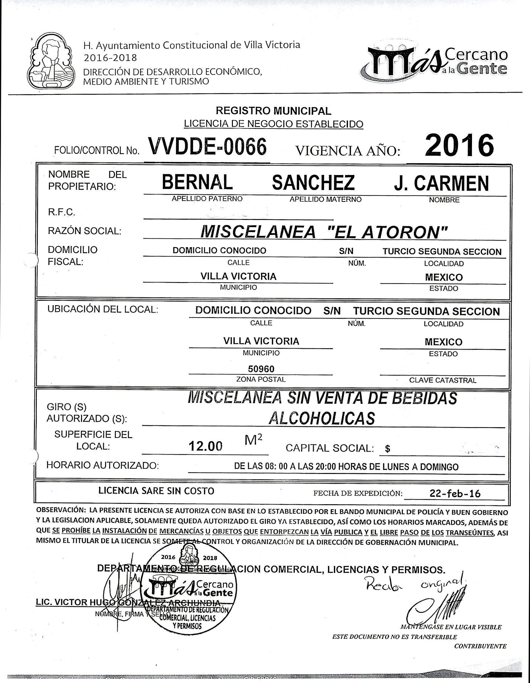 ARTICULOS 126, 128, 137, 143 DEL BANDO MUNICIPAL 2016. VVDDE-0056