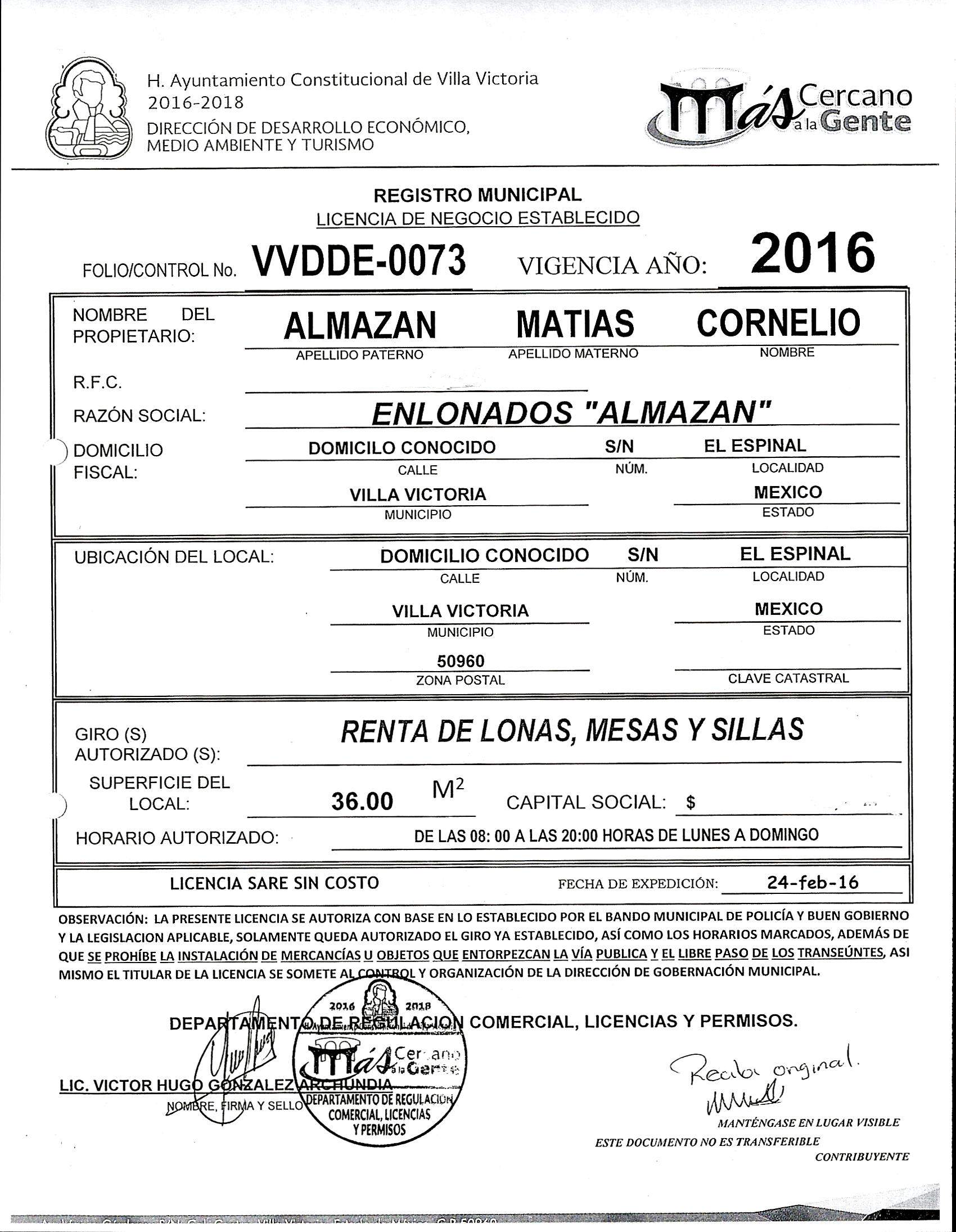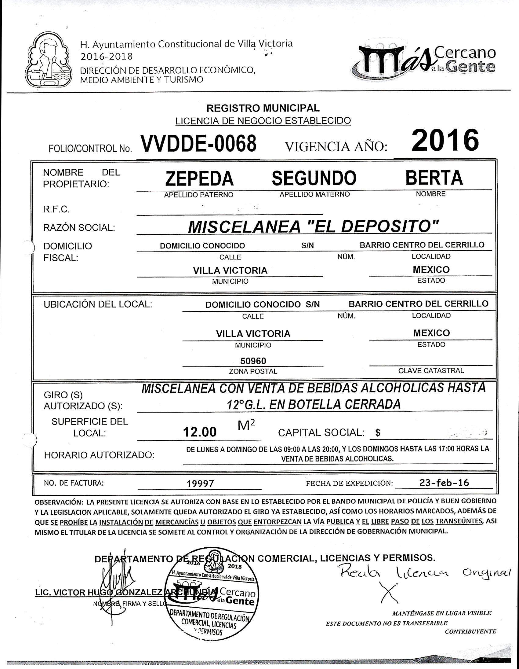 ARTICULOS 126, 128, 137, 143 DEL BANDO MUNICIPAL 2016. VVDDE-0059