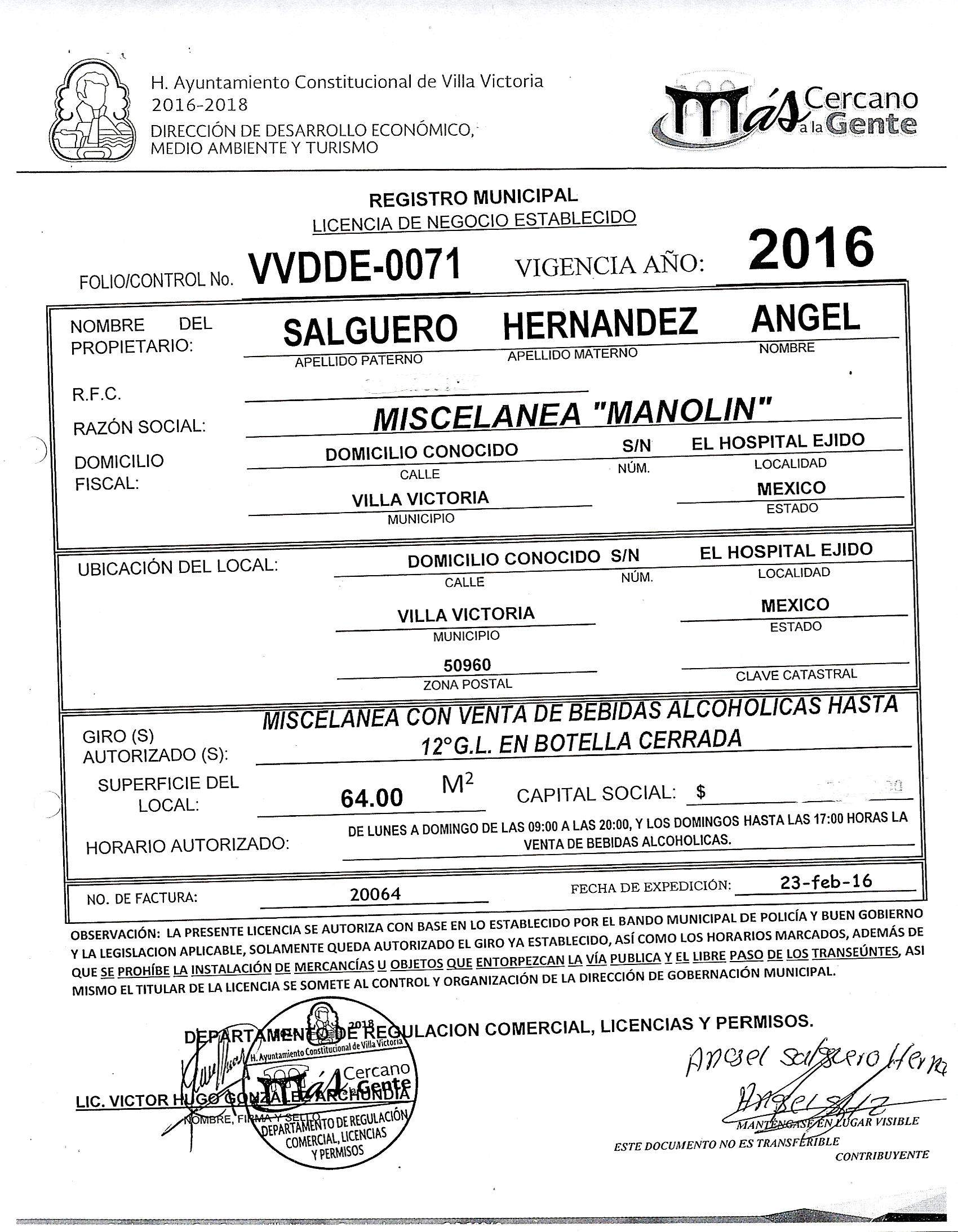 ARTICULOS 126, 128, 137, 143 DEL BANDO MUNICIPAL 2016. VVDDE-0064