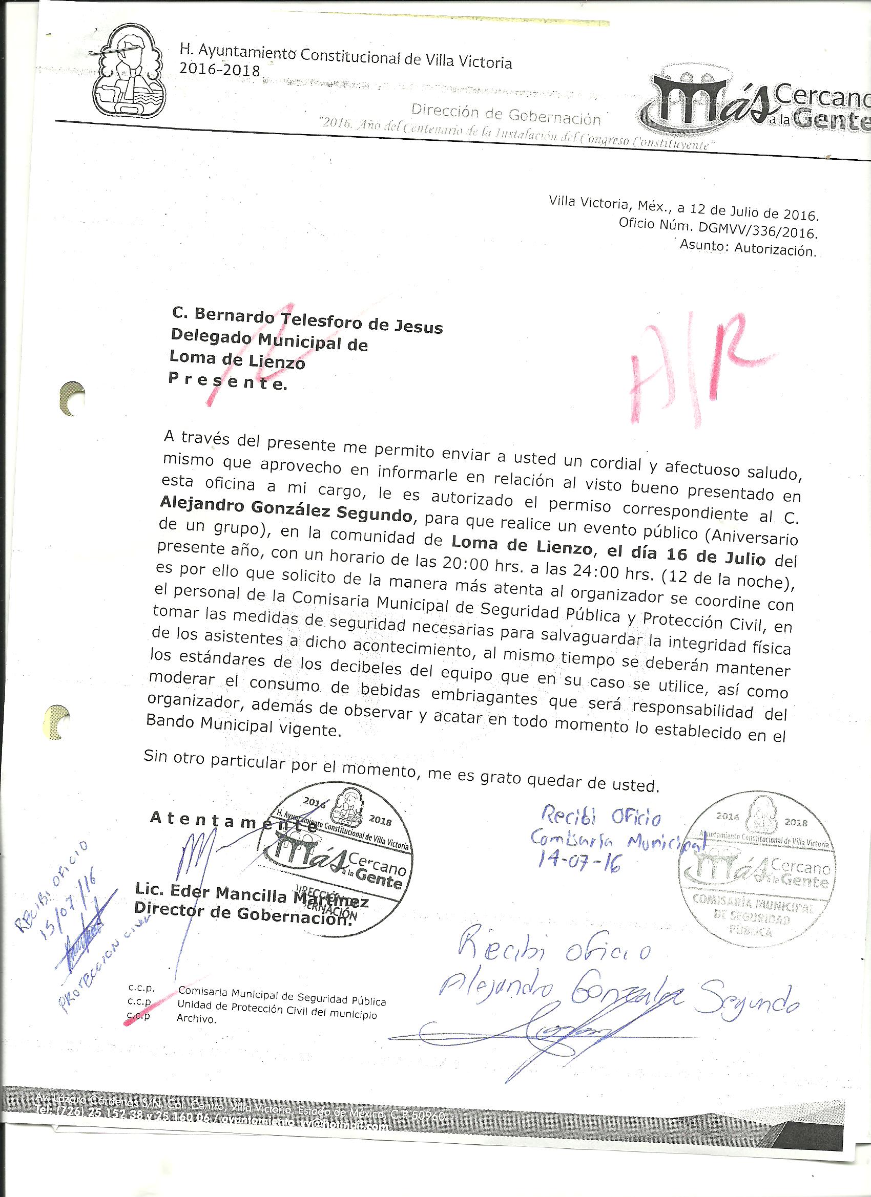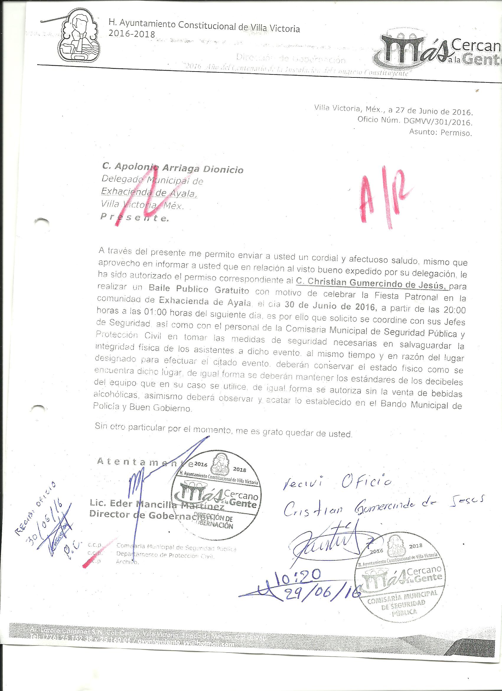 Archivo del documento: PERMISO BAILE 301.jpg Archivo del documento (Enlace externo): NO APLICA Monto total, bien, servicio y/o recurso aprovechado :