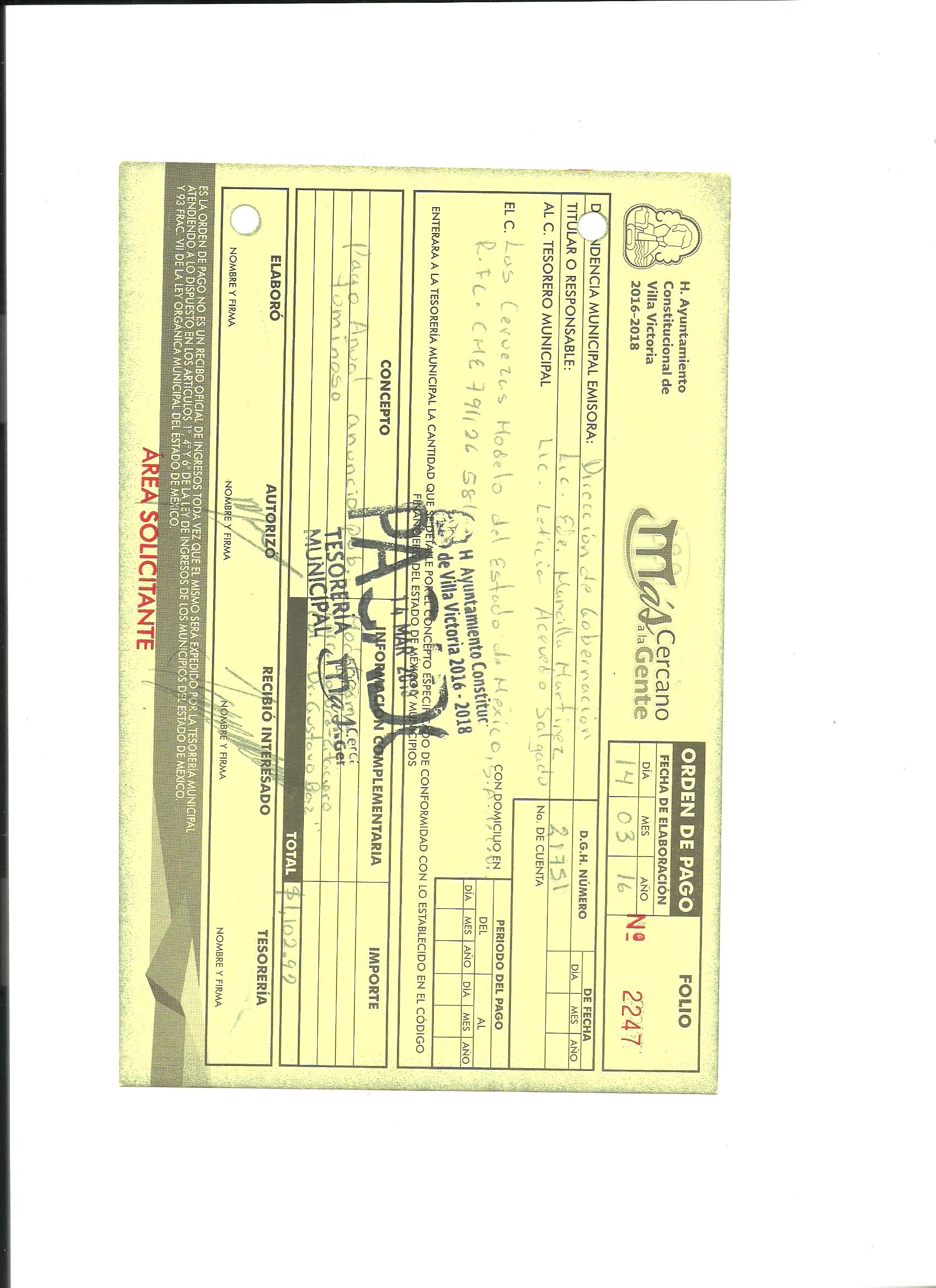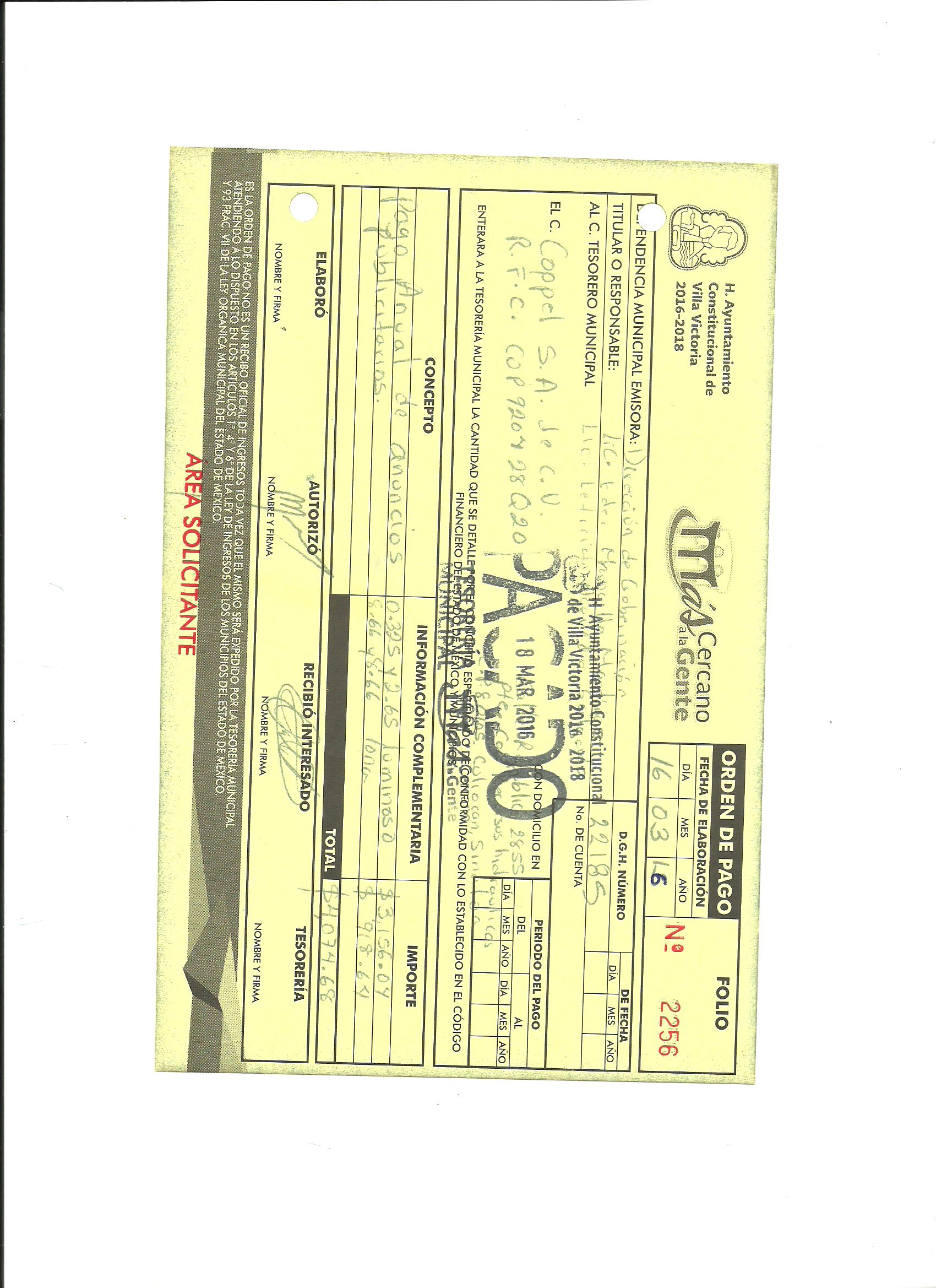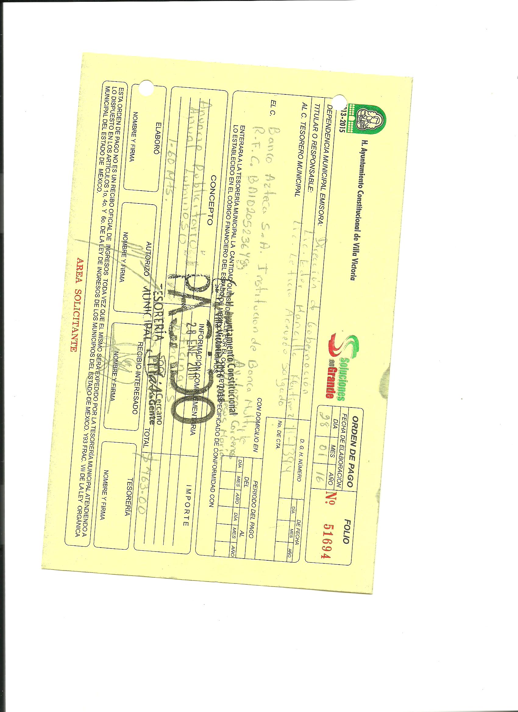 Archivo del documento: 1er. TRIMESTRE 2016.pdf Monto total, bien, servicio y/o recurso aprovechado :