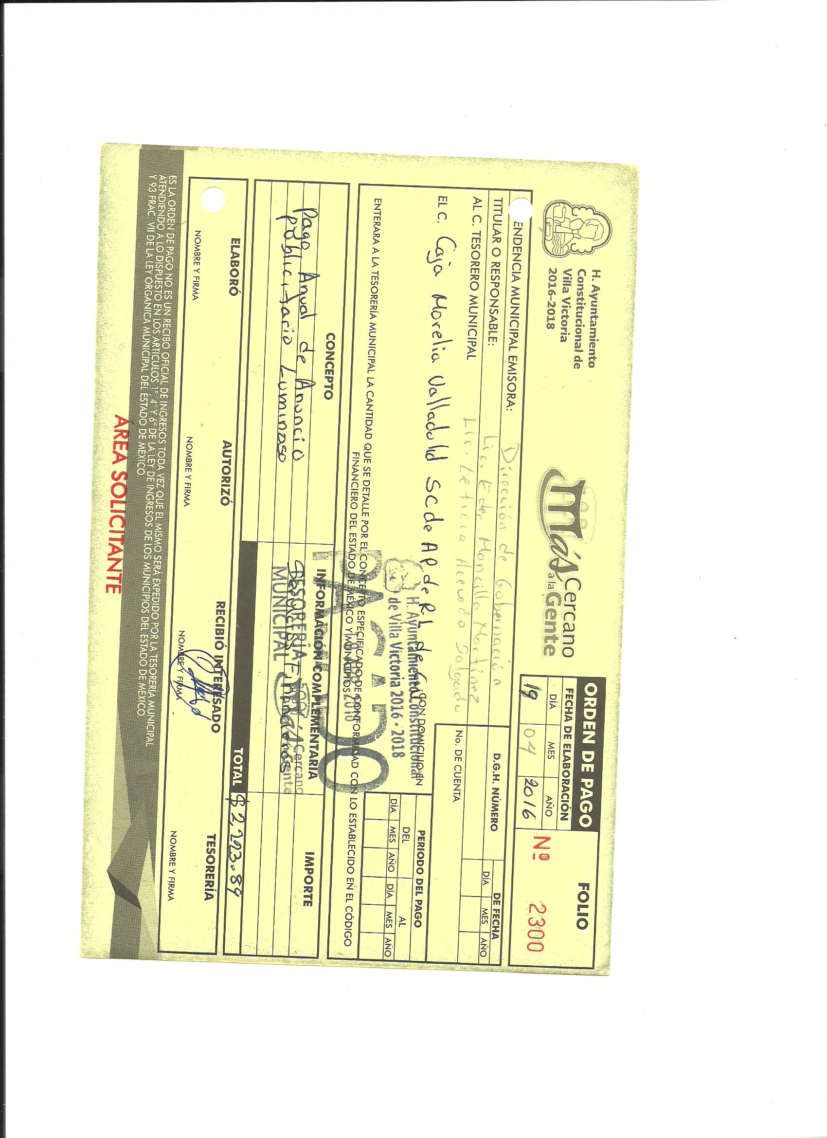 Archivo del documento: ANUNCIO 016.jpg Archivo del documento (Enlace externo): NO APLICA Monto total, bien, servicio y/o recurso aprovechado :