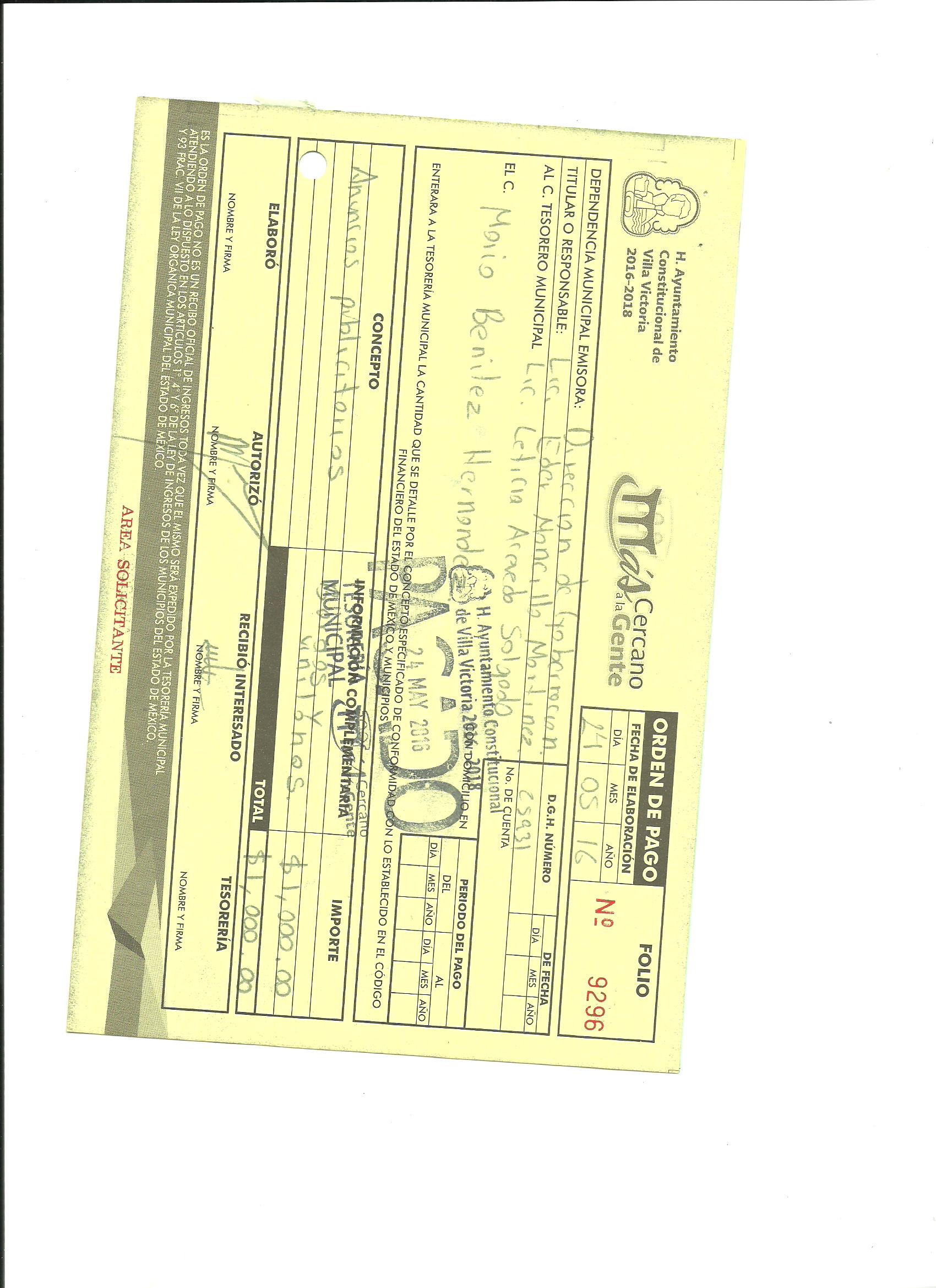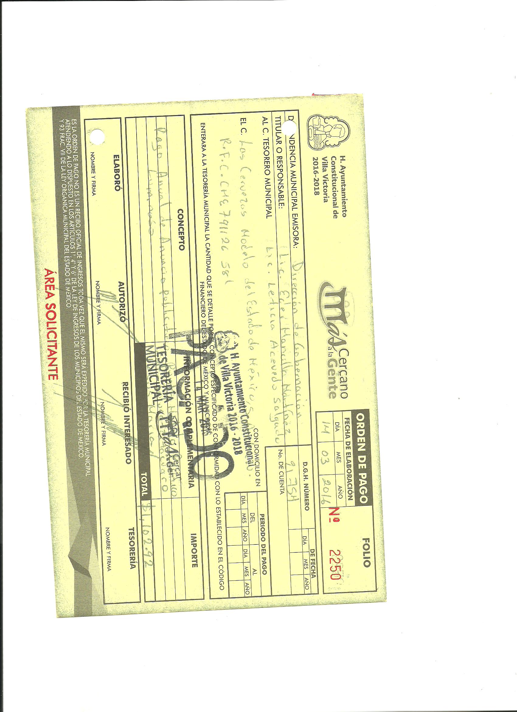 Archivo del documento: 2do. TRIMESTRE 2016.pdf Monto total, bien, servicio y/o recurso aprovechado :