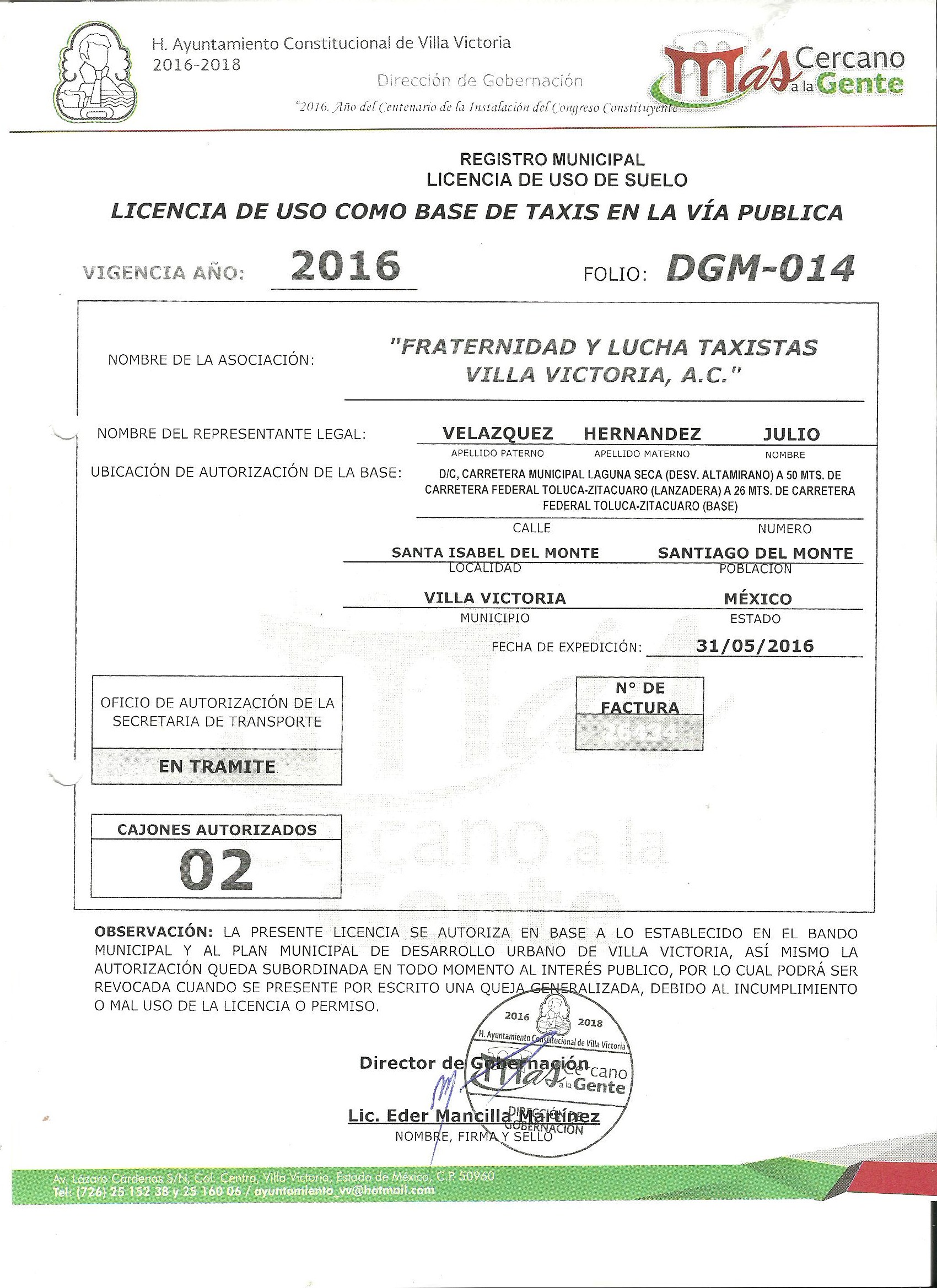 FRATERNIDAD Y LUCHA TAXISTAS VILLA VICTORIA, A.C.
