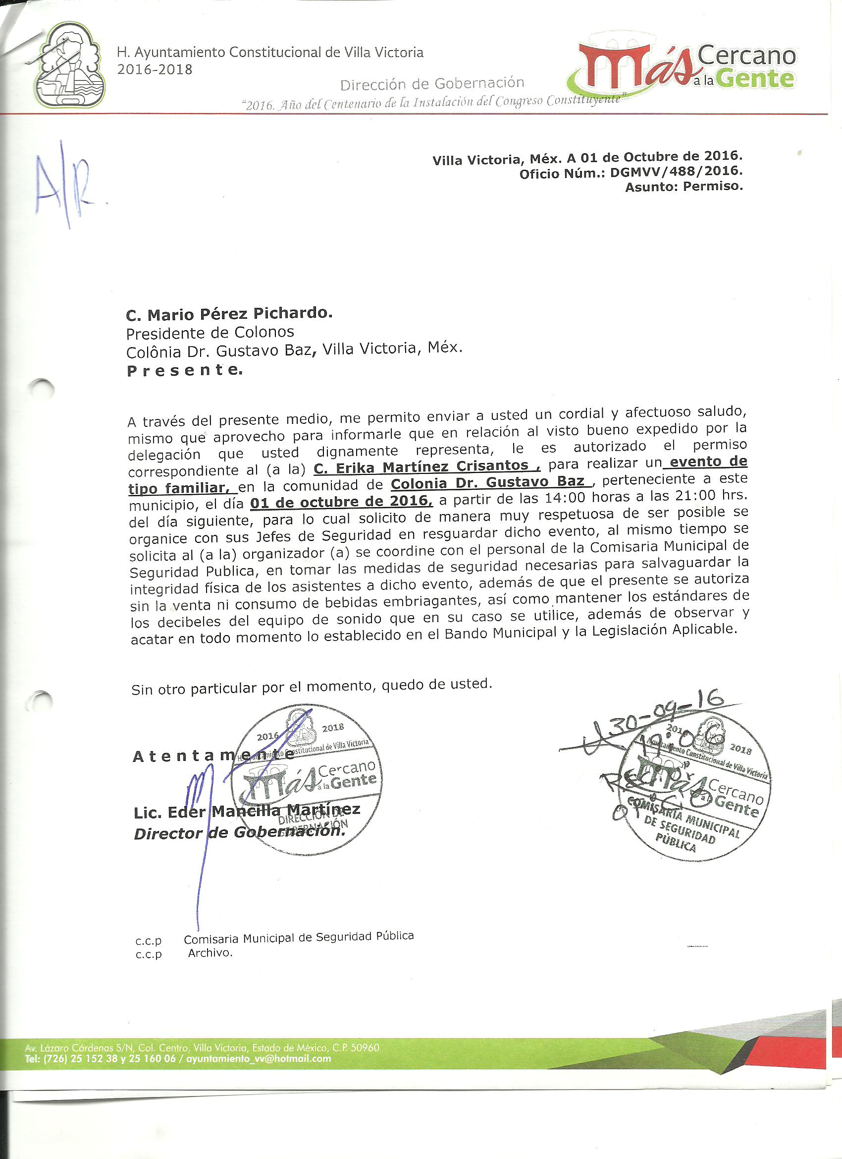 Archivo del documento: PERMISO 488.jpg Monto total, bien, servicio y/o recurso aprovechado :