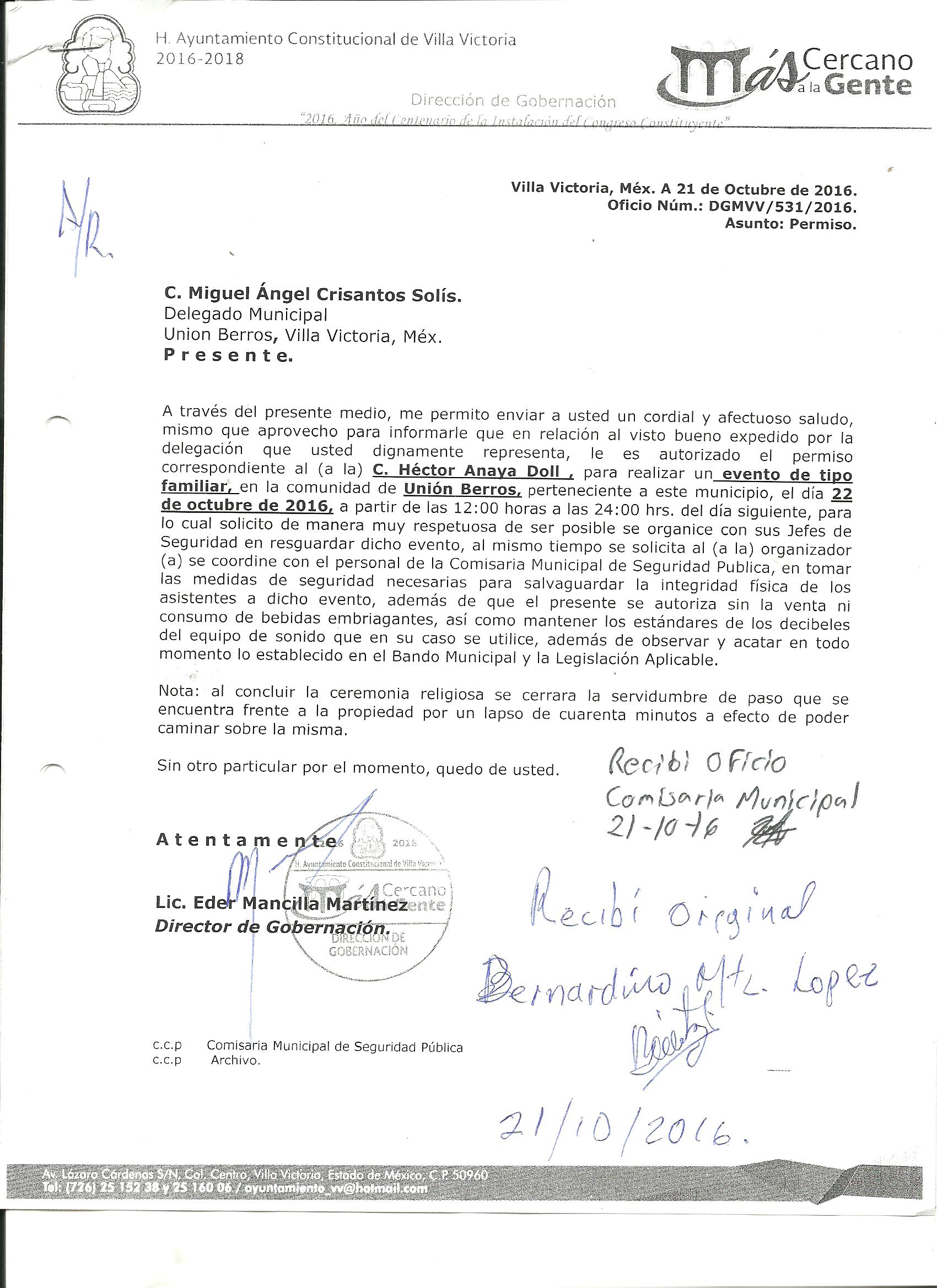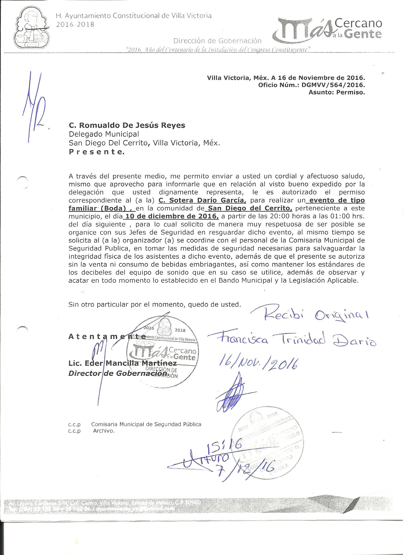Archivo del documento: PERMISO 556.jpg Monto total, bien, servicio y/o recurso aprovechado :