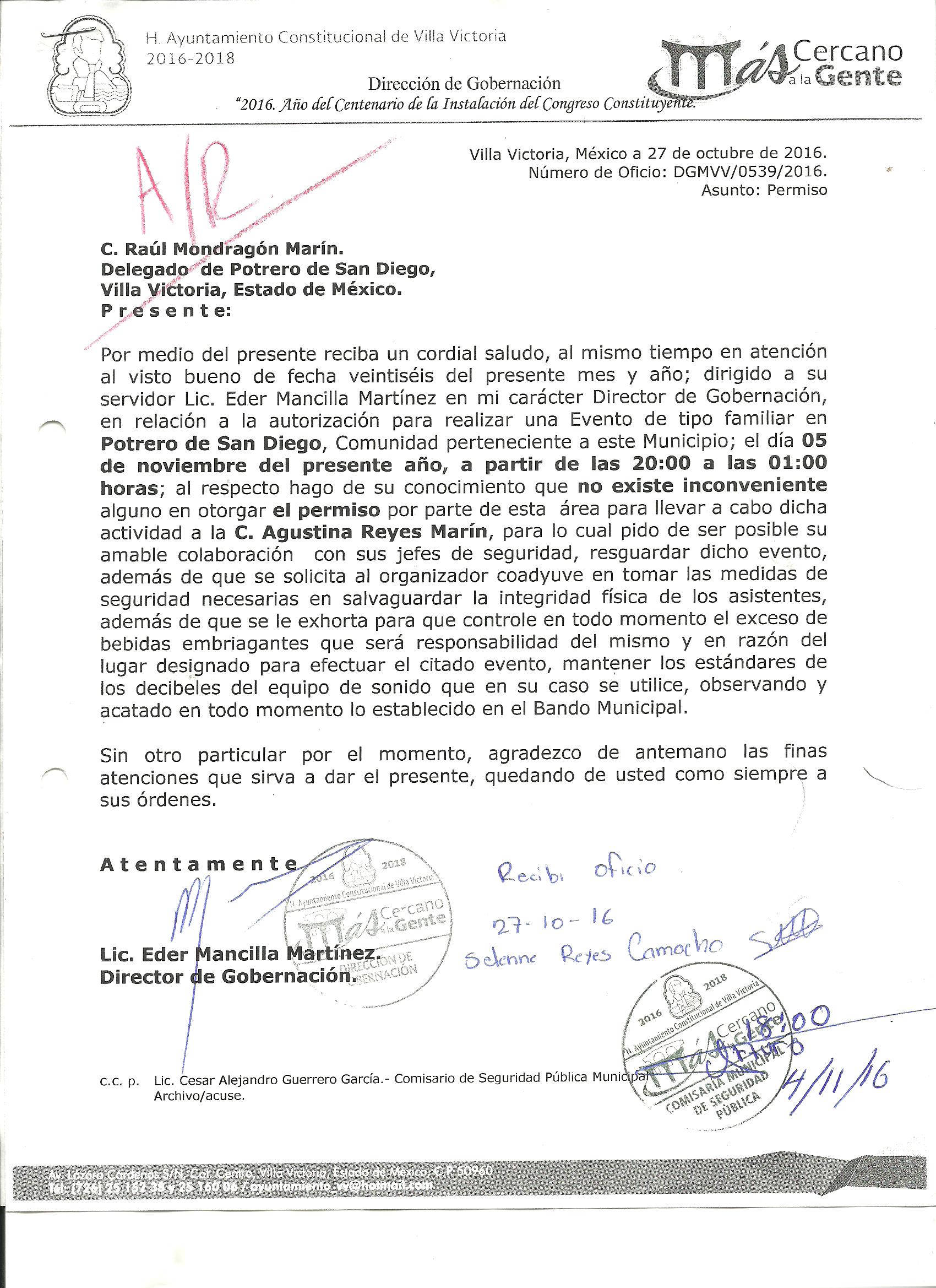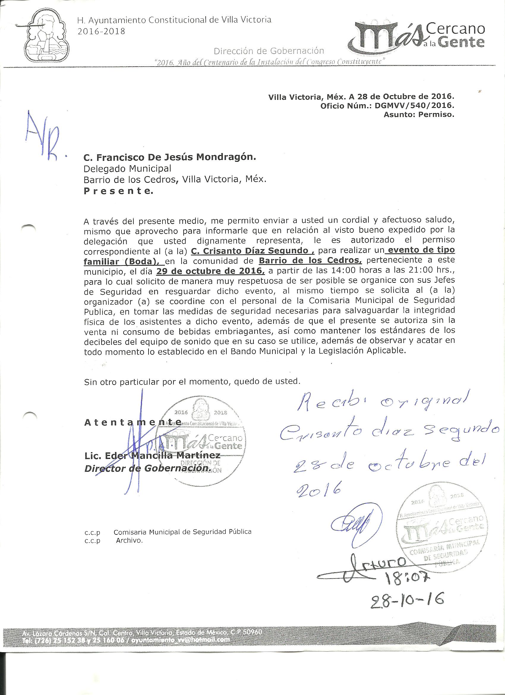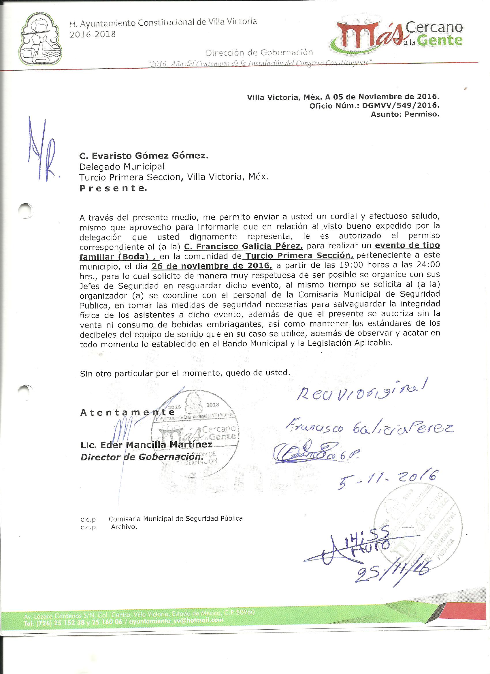 Archivo del documento: PERMISO 539.jpg Monto total, bien, servicio y/o recurso aprovechado :
