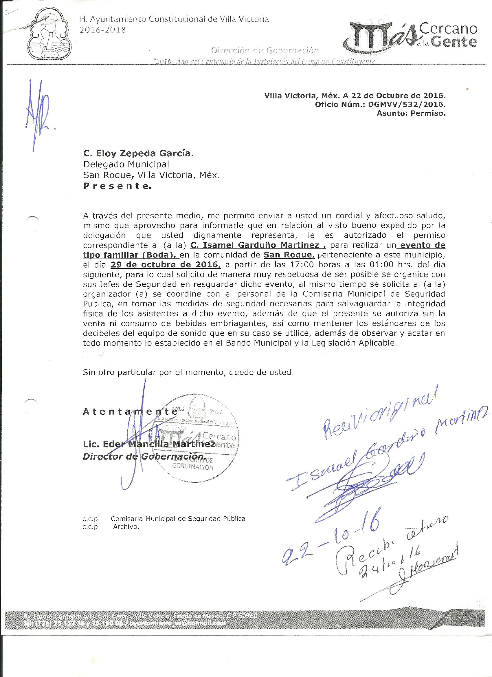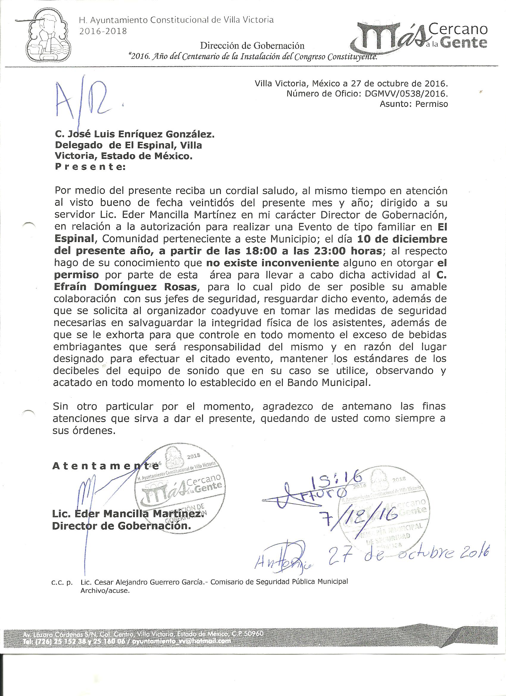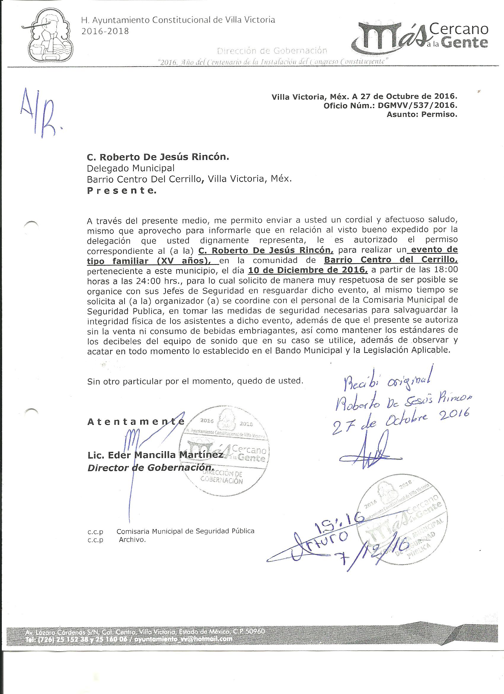 Archivo del documento: PERMISO 539.jpg Monto total, bien, servicio y/o recurso aprovechado :