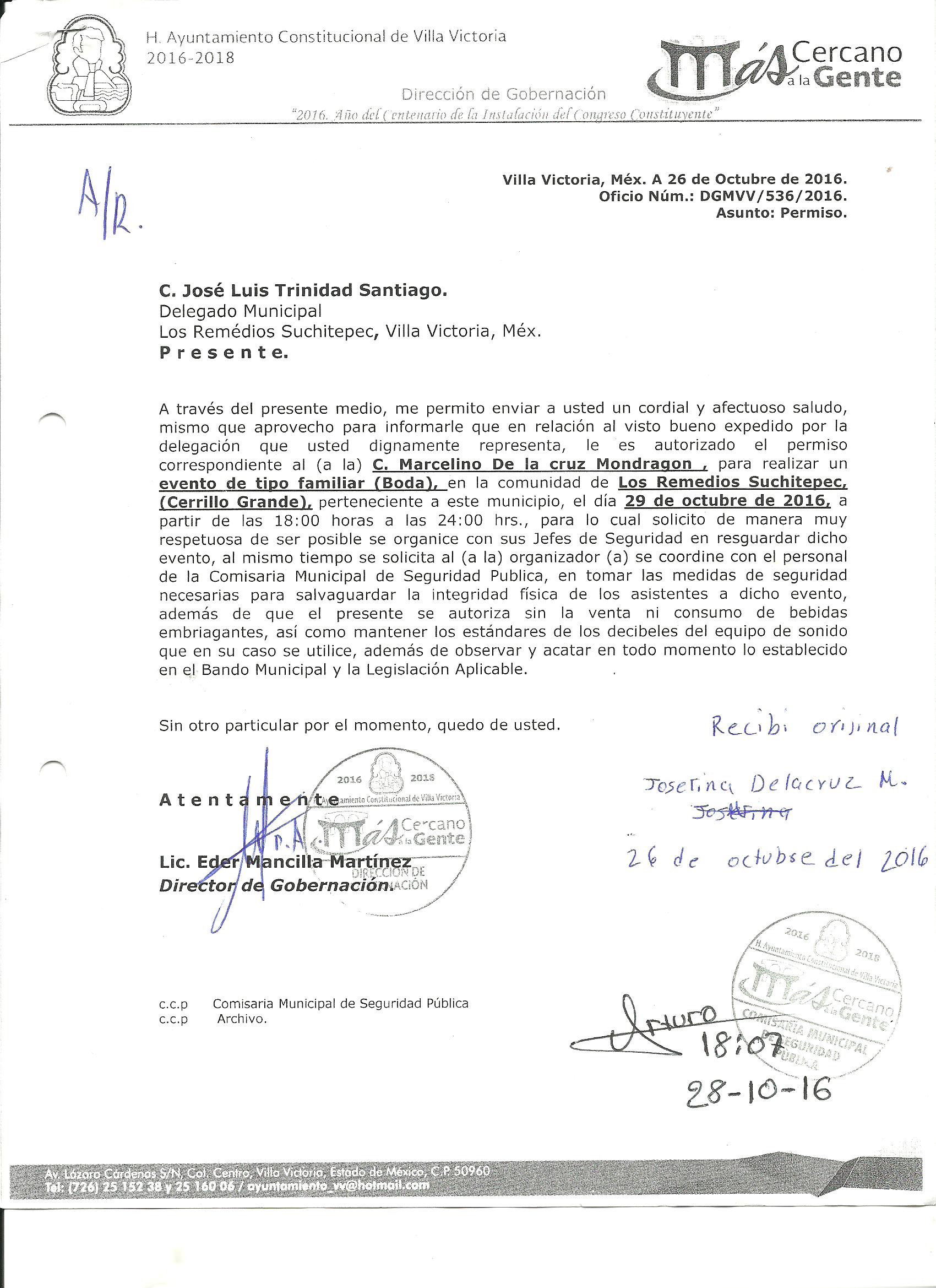 Archivo del documento: PERMISO 536.jpg Monto total, bien, servicio y/o recurso aprovechado :