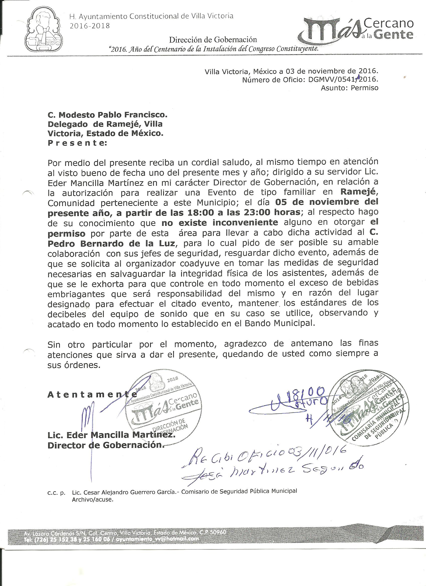 Archivo del documento: PERMISO 541.jpg Monto total, bien, servicio y/o recurso aprovechado :