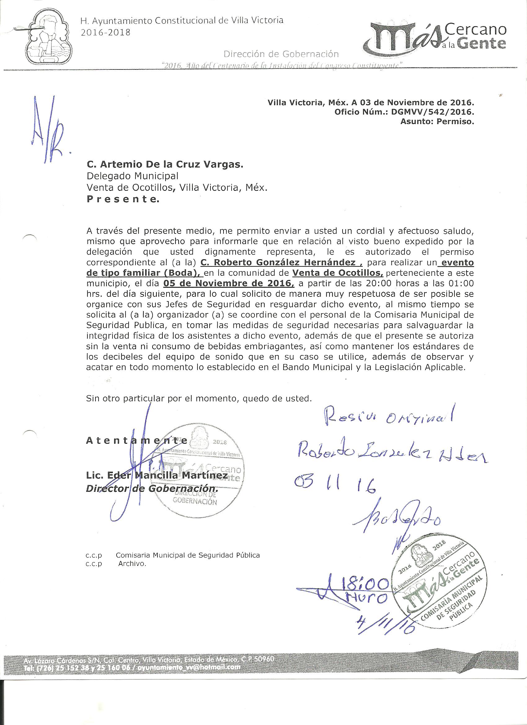 Archivo del documento: PERMISO 542.jpg Monto total, bien, servicio y/o recurso aprovechado :