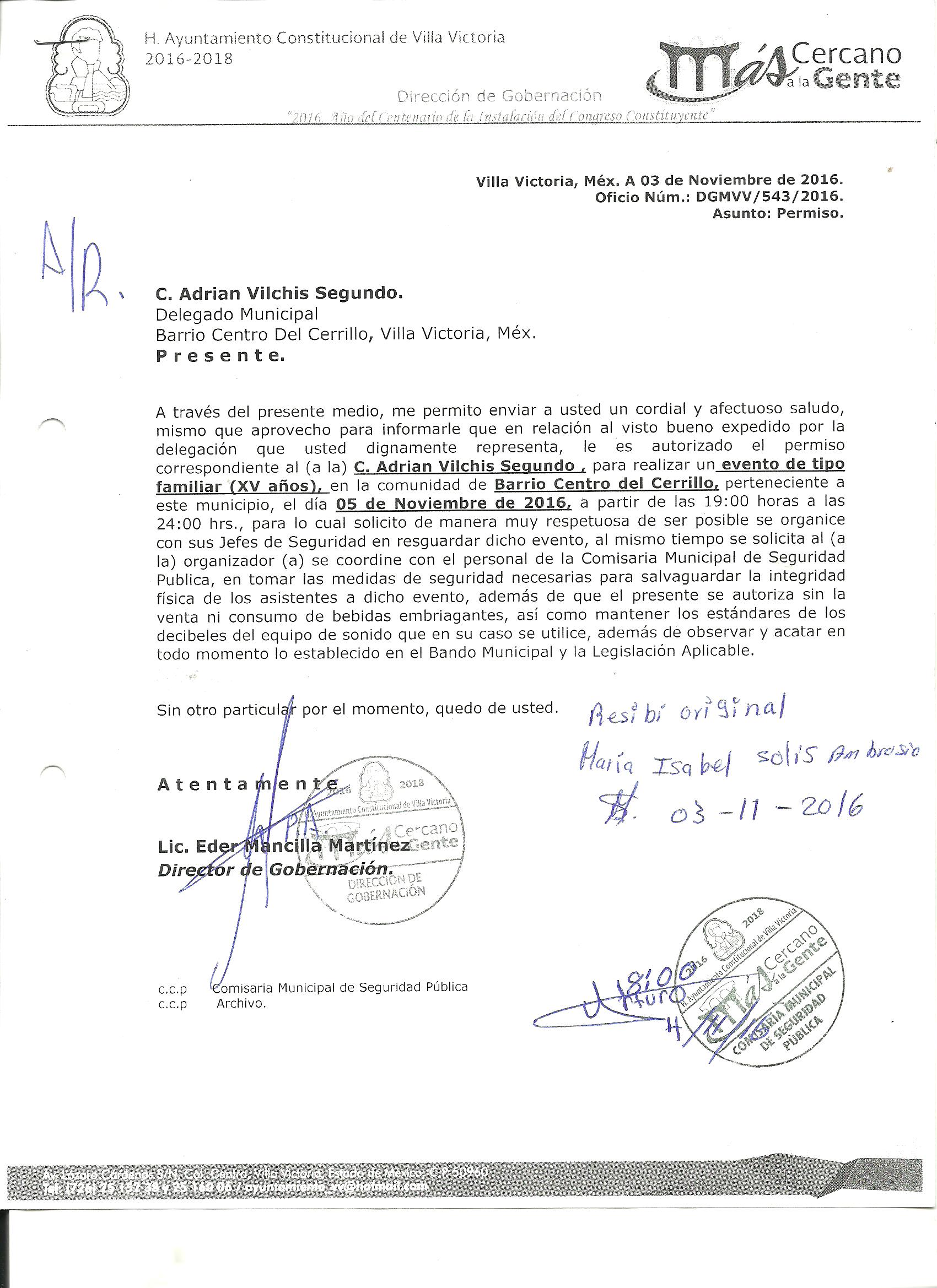Archivo del documento: PERMISO 543.jpg Monto total, bien, servicio y/o recurso aprovechado :