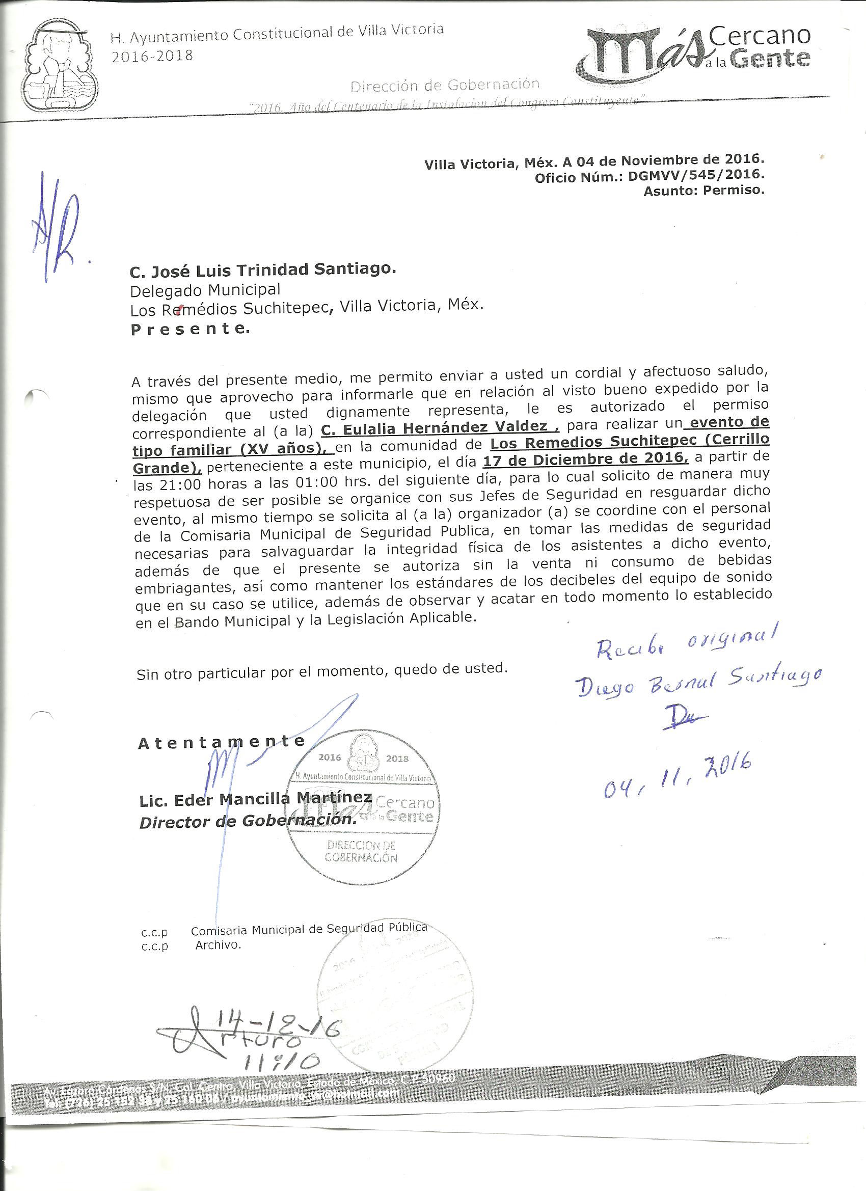 Archivo del documento: PERMISO 545.jpg Monto total, bien, servicio y/o recurso aprovechado :