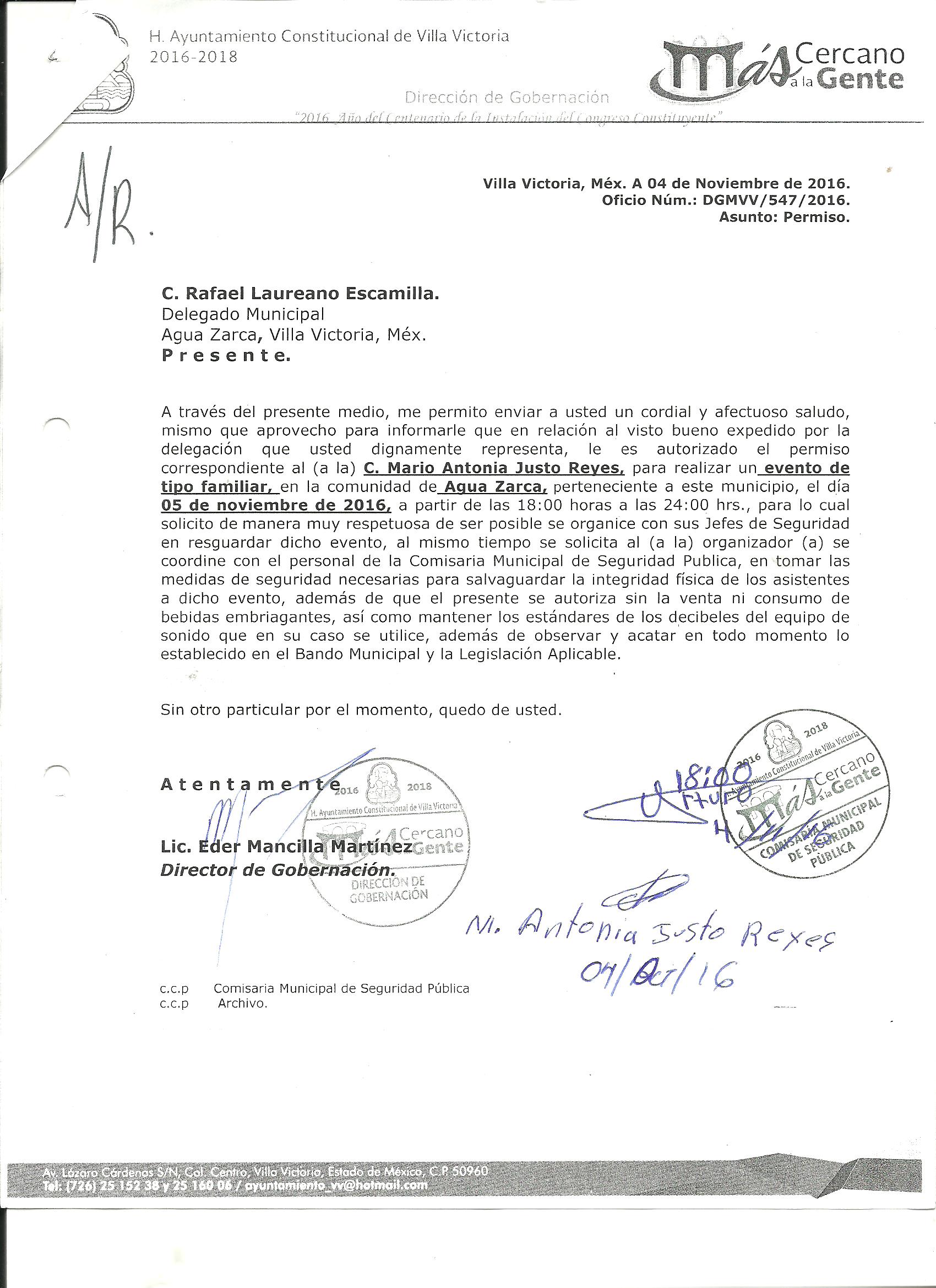 Archivo del documento: PERMISO 547.jpg Monto total, bien, servicio y/o recurso aprovechado :