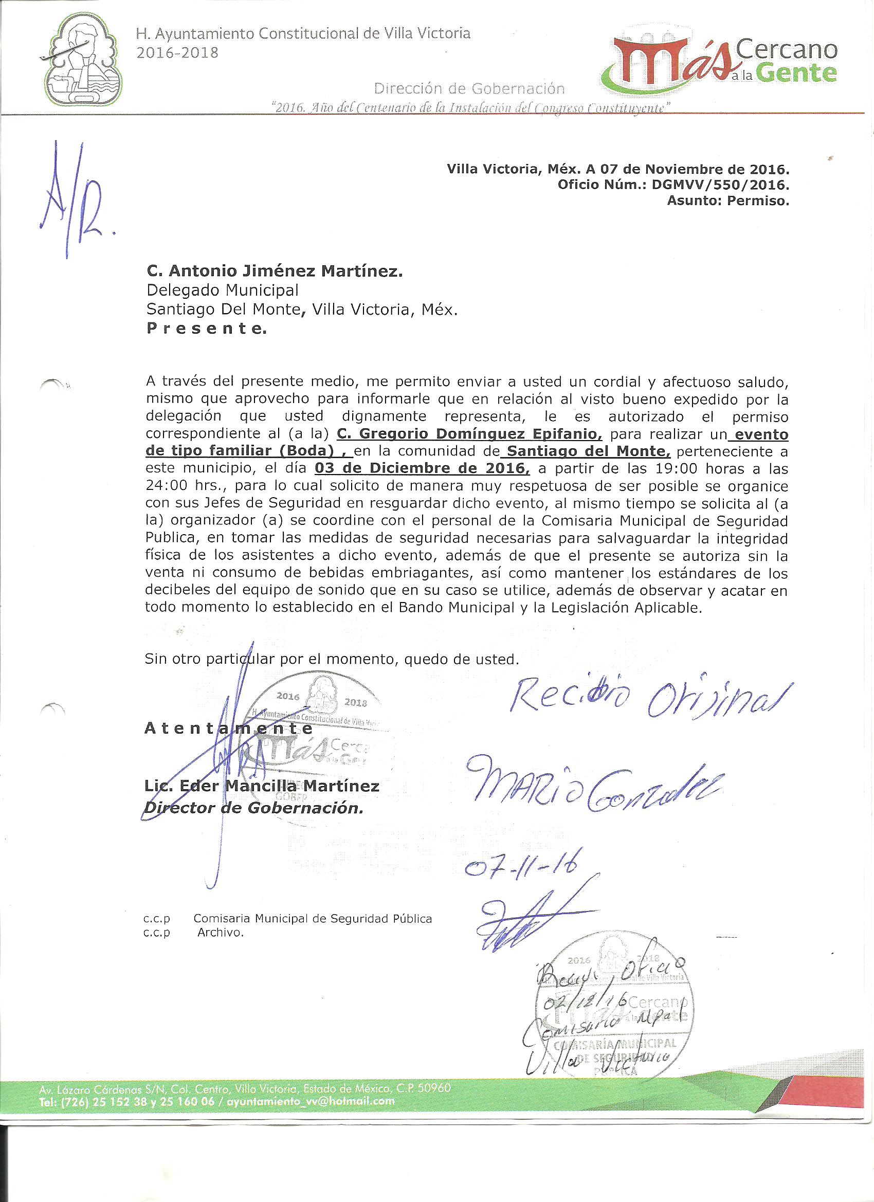 Archivo del documento: PERMISO 550.jpg Monto total, bien, servicio y/o recurso aprovechado :