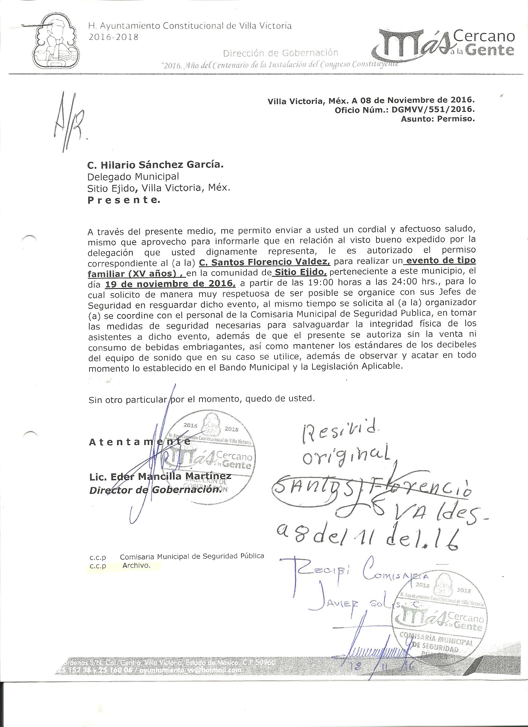 Archivo del documento: PERMISO 551.jpg Monto total, bien, servicio y/o recurso aprovechado :