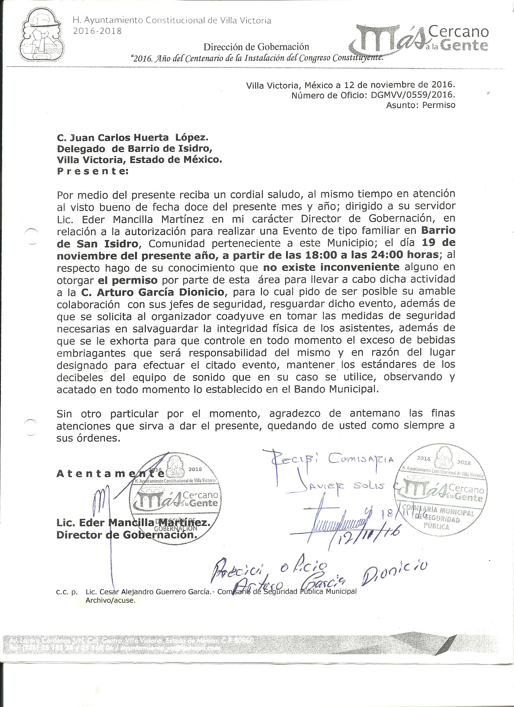 Archivo del documento: PERMISO 559.jpg Monto total, bien, servicio y/o recurso aprovechado :