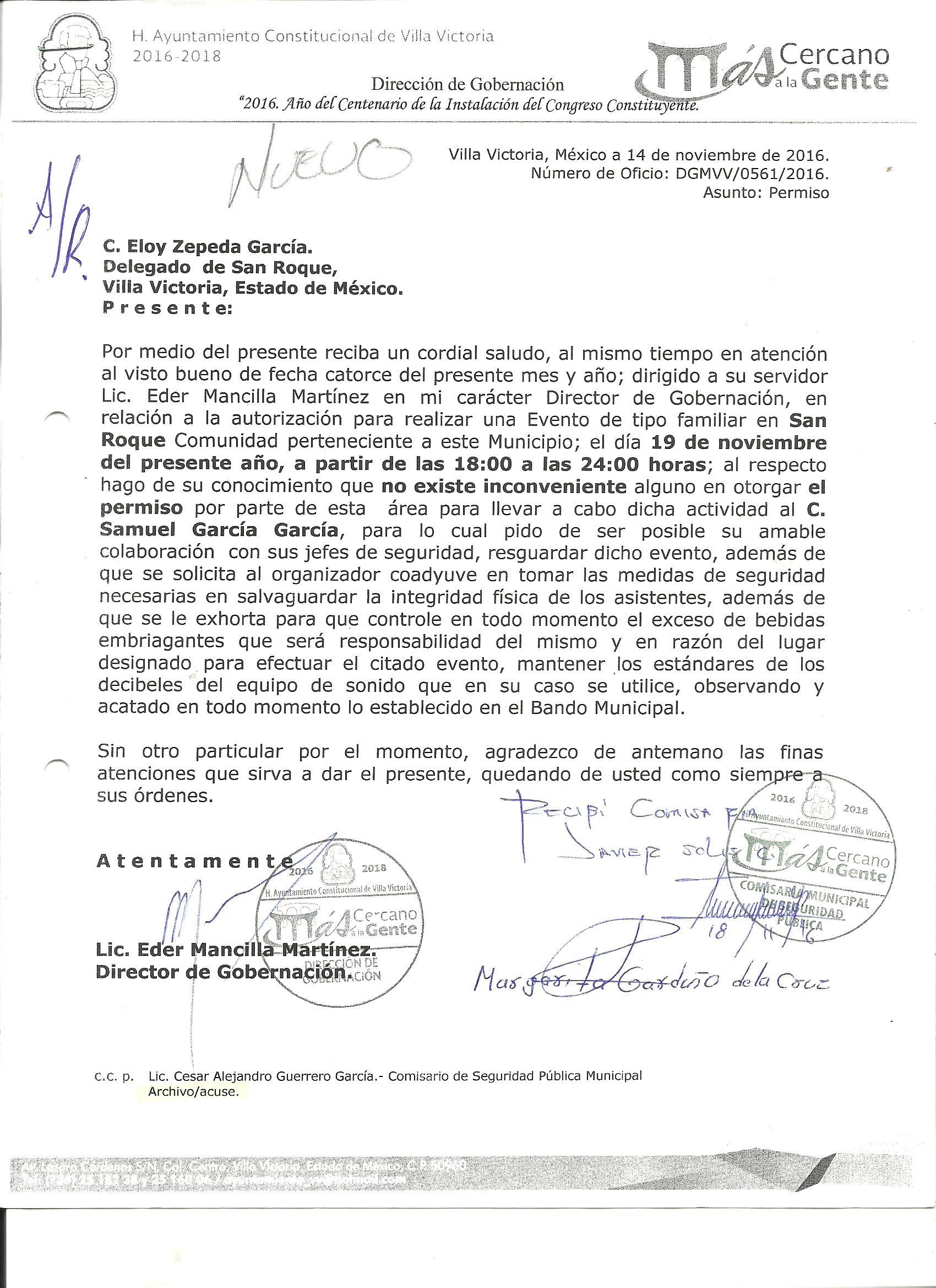 Archivo del documento: PERMISO 561.jpg Monto total, bien, servicio y/o recurso aprovechado :