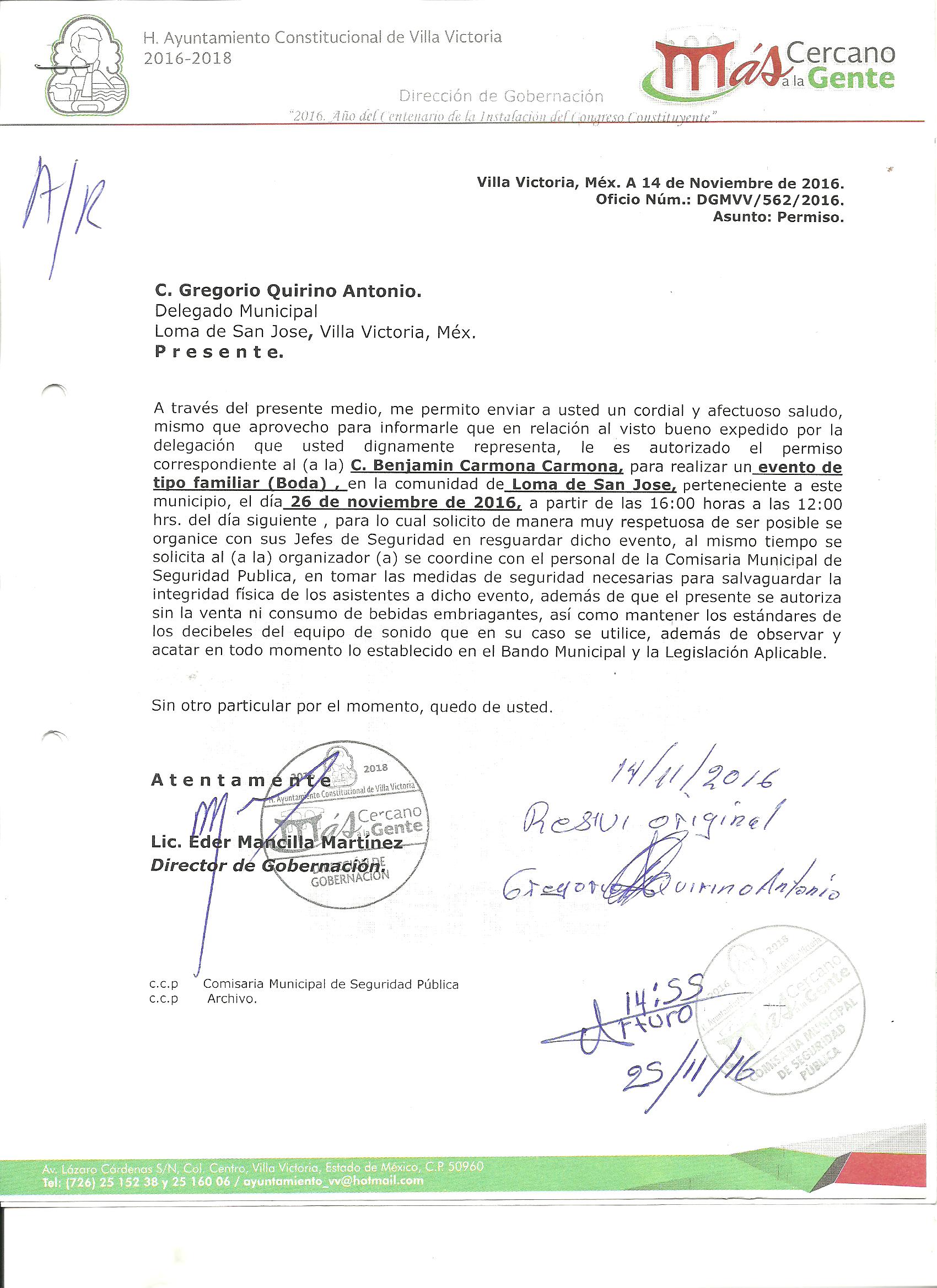 Archivo del documento: PERMISO 562.jpg Monto total, bien, servicio y/o recurso aprovechado :