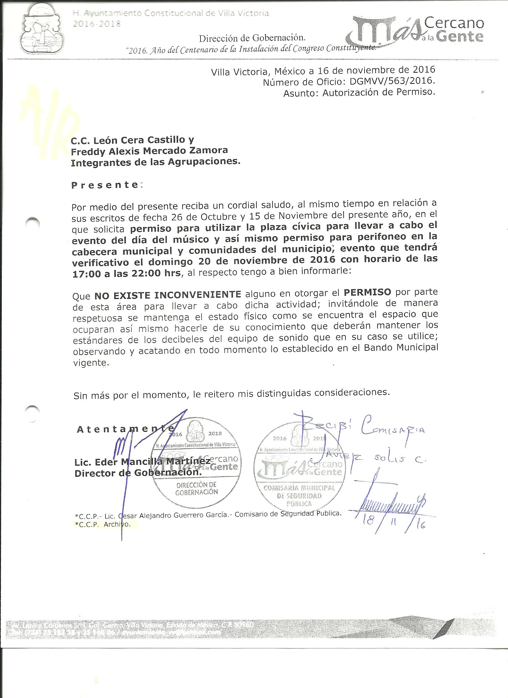 Archivo del documento: PERMISO 563.jpg Monto total, bien, servicio y/o recurso aprovechado :