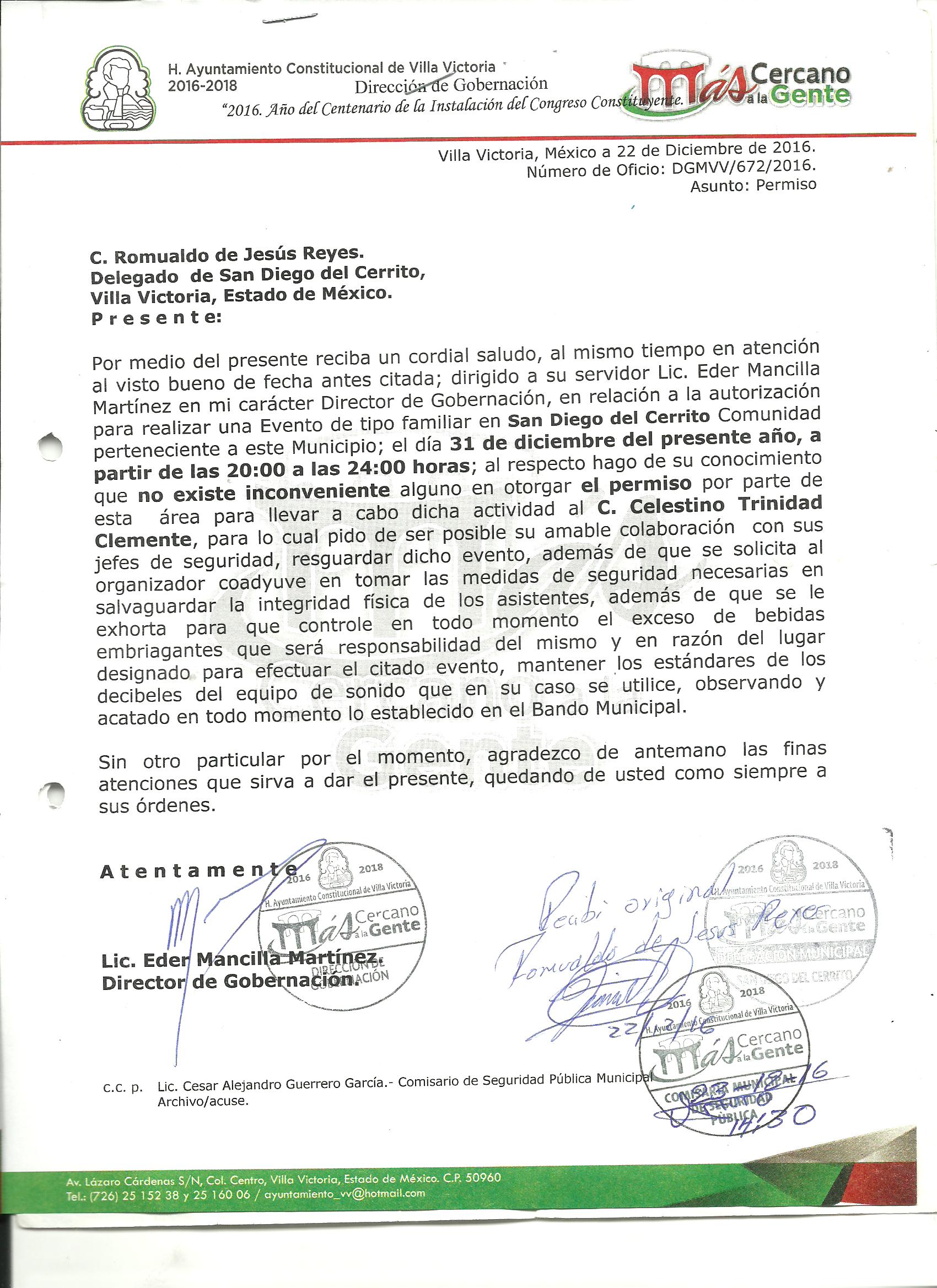 EXPEDICION DE PERMISO PARA LA REALIZACION DE FIESTAS PARTICULARES Y EVENTOS RELIGIOSOS