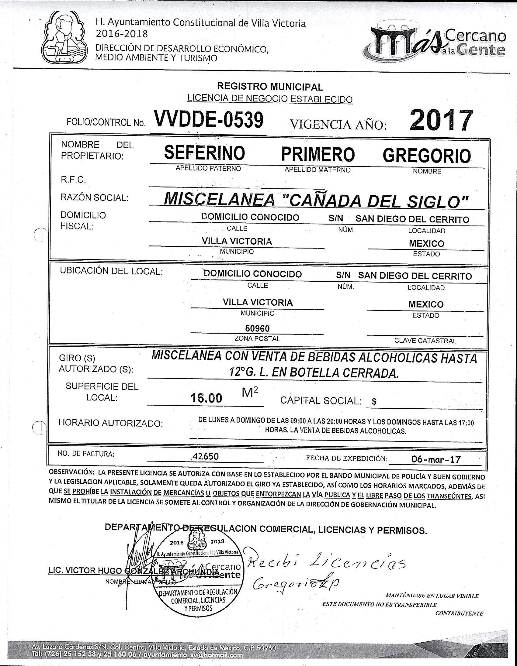 GREGORIO SEFERINO PRIMERO