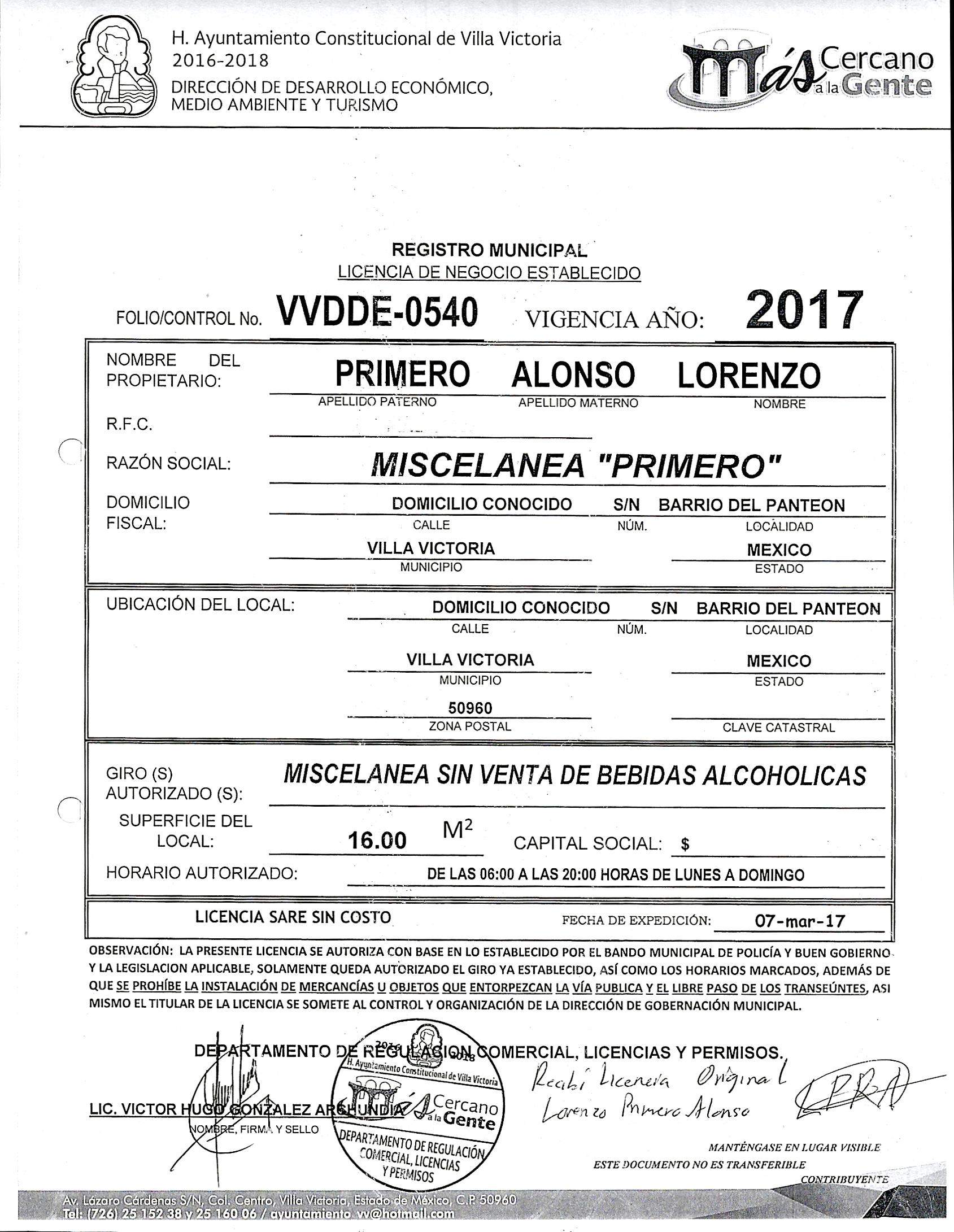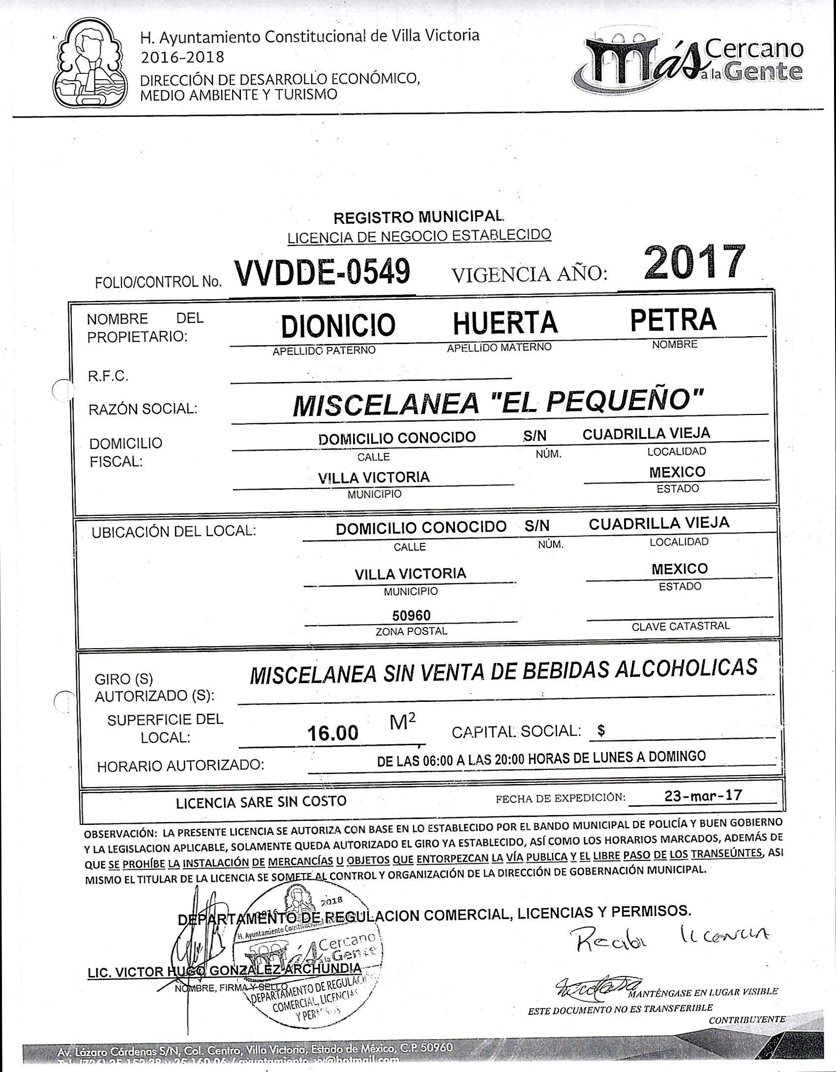 Fundamento jurídico : ARTICULO 125 DEL BANDO MUNICIPAL DE VILLA VICTORIA, ESTADO DE MÉXICO.