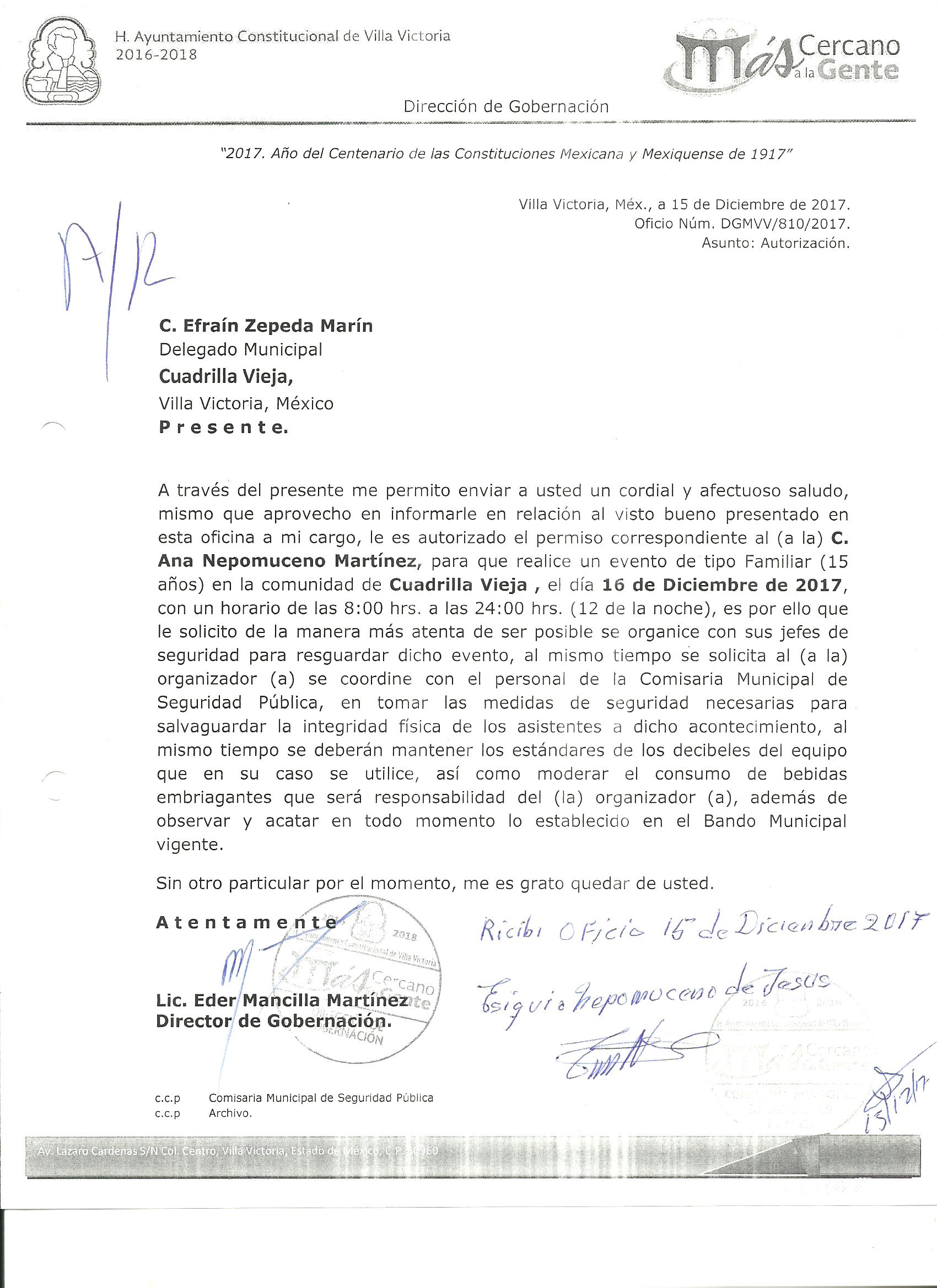 EXPEDICION DE PERMISOS PARA LA REALIZACION DE FIESTAS PARTICULARES Y EVENTOS RELIGIOSOS